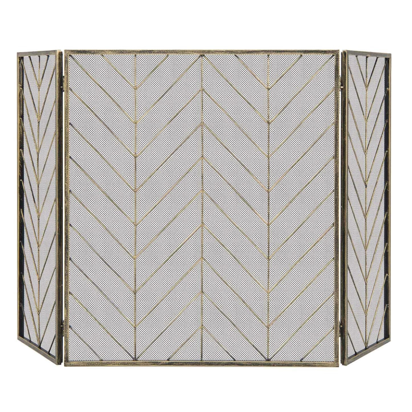 Enhance the safety and style of your fireplace with our heavy-duty 3-panel fireplace screen. Made with premium materials, the metal frame ensures a solid structure. The convenient foldable design allows you to adjust the width and easily store the screen when not in use. Keep your children and pets safe by blocking sparks and wood splinters with this screen. Its clean lines and elegant herringbone-shaped frame add a vintage atmosphere to your home, making it suitable for holiday decoration. With no assembly required, you can enjoy the benefits of this screen right away, saving you time and effort.