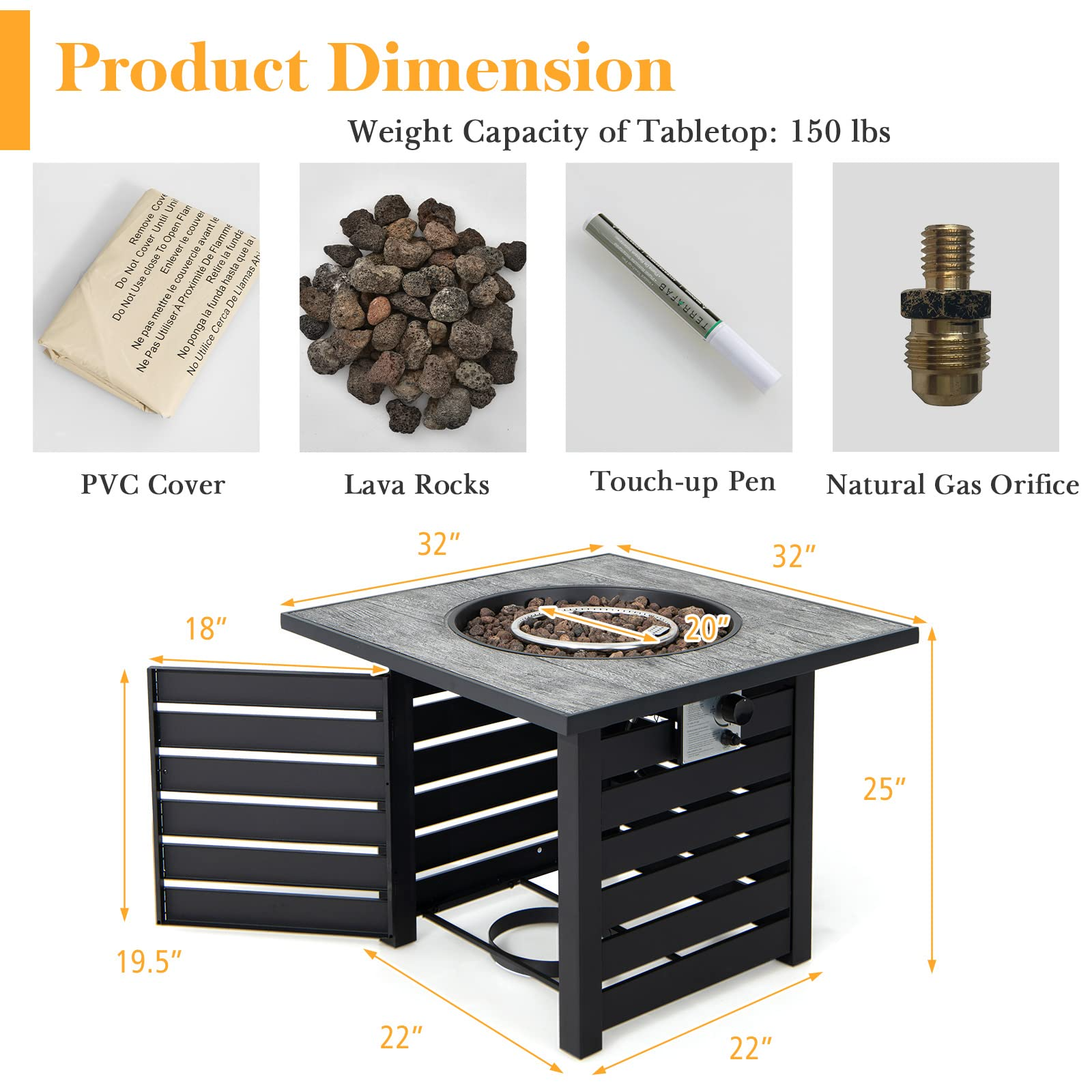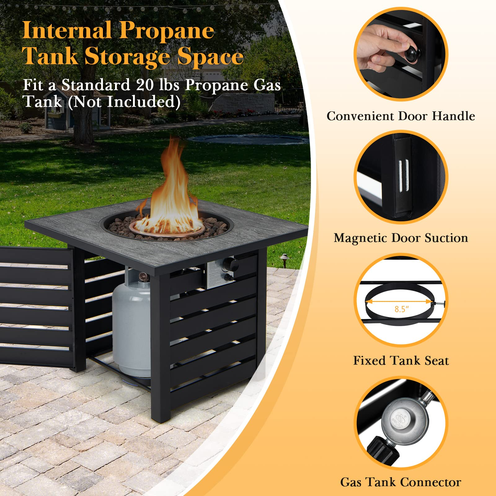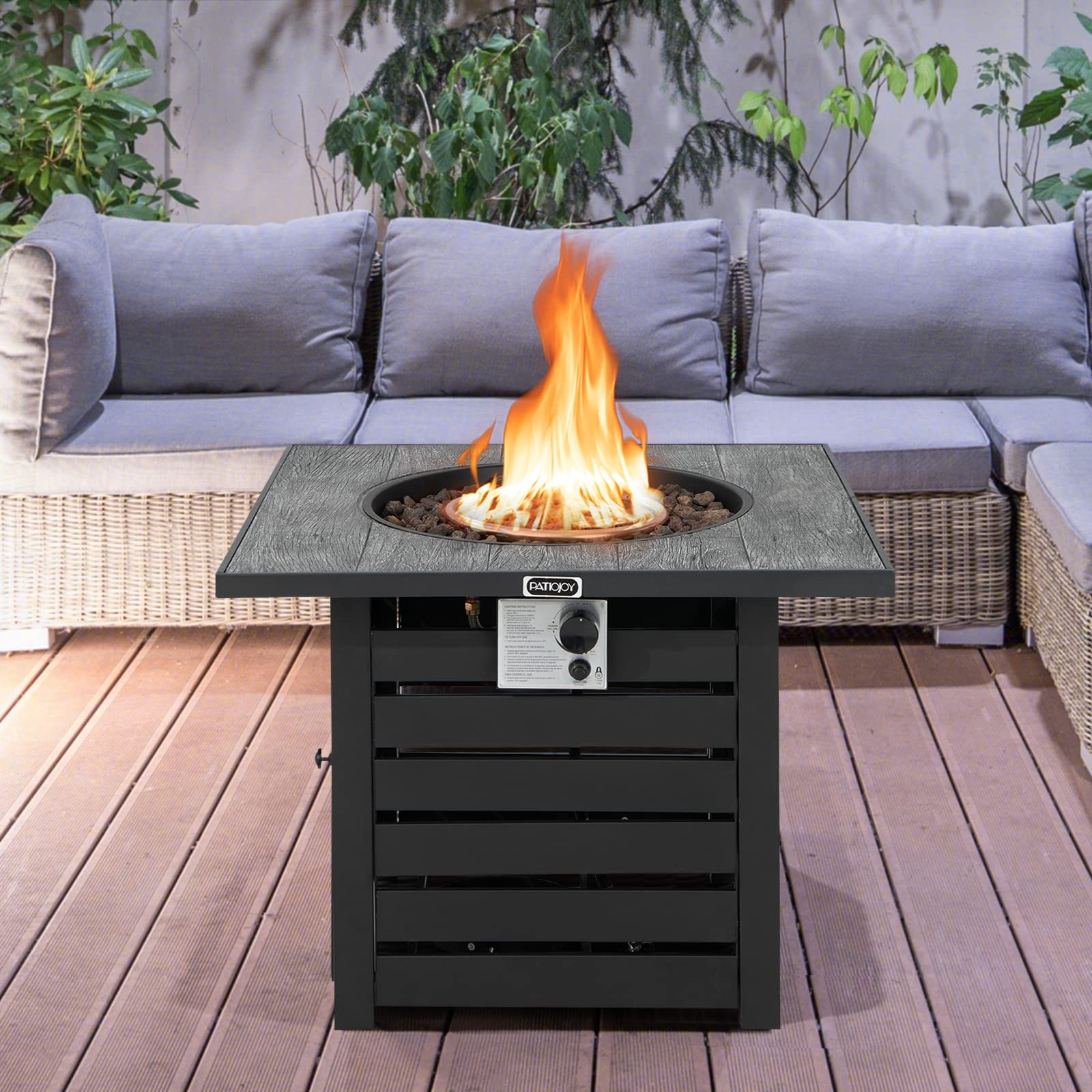 Tangkula 32-Inch Outdoor Propane Fire Pit Table, Patiojoy 50,000 BTU Square Gas Fire Pit with Ore Powder Tabletop