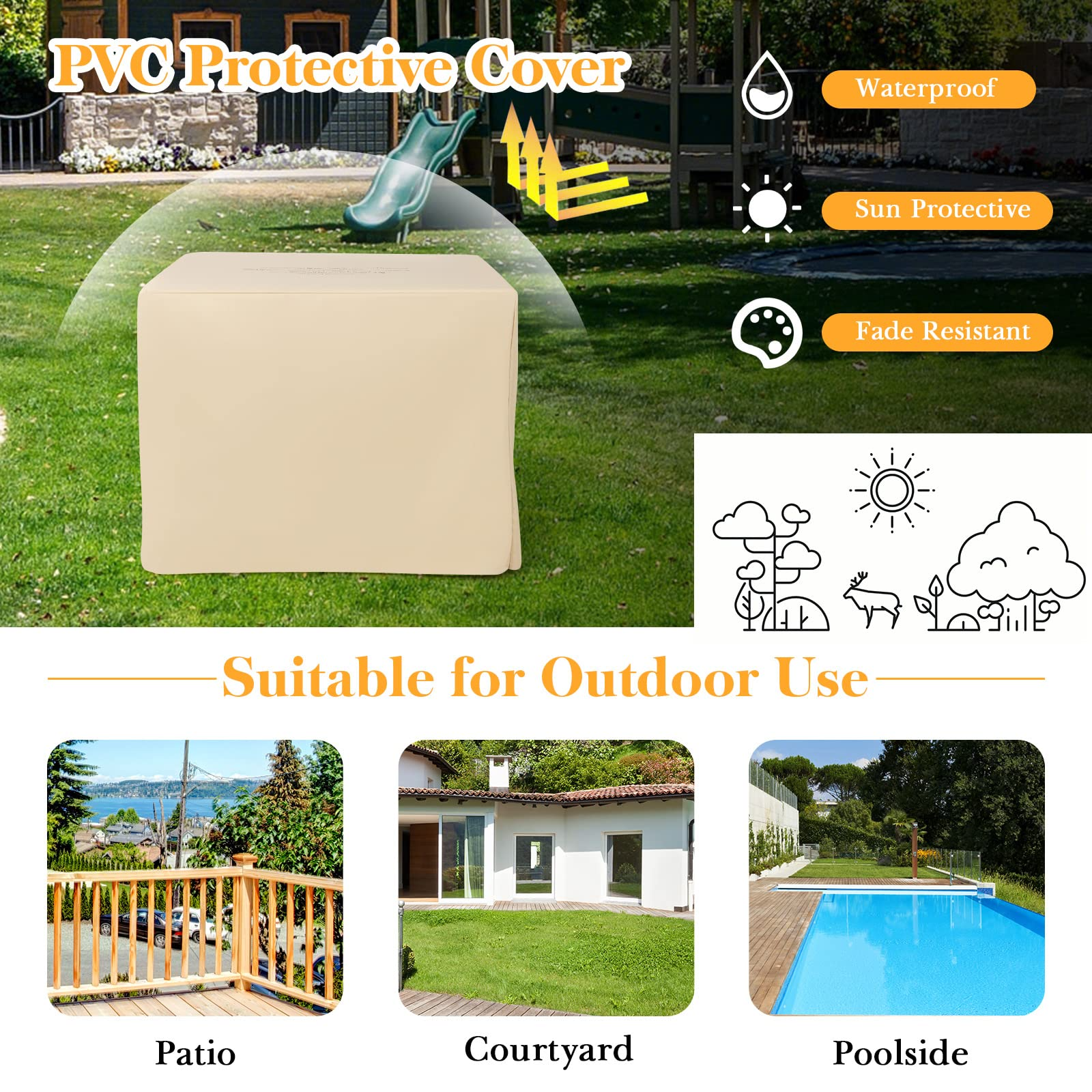 With an auto-ignition design, you can easily turn on the propane fire pit. Once ignited, the 50,000 BTU square fire pit will bring warmth in cold winters, rendering your surroundings comfortable all the time. The flame size can be altered through the adjustable knob. By adding the equipped lava rocks, the warmth can be kept while the flame is more attractive. In addition, the easy-to-open door provides a space to store a 20 lbs propane tank (not included) for neatness. If you finish gathering with your family and friends, just leave this propane fire table outdoors and lay on the PVC protective cover.
