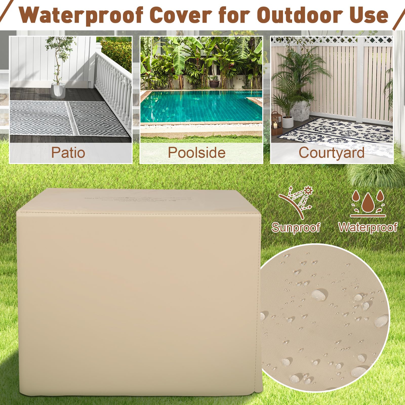 - Waterproof Cover for Outdoor Use: This 34.5-inch square propane gas fire table will come with a protective cover that is sunproof and waterproof. Therefore, it can prevent the propane gas fire pit table from harsh sunlight and heavy rain. And you can put it outdoors without many worries.