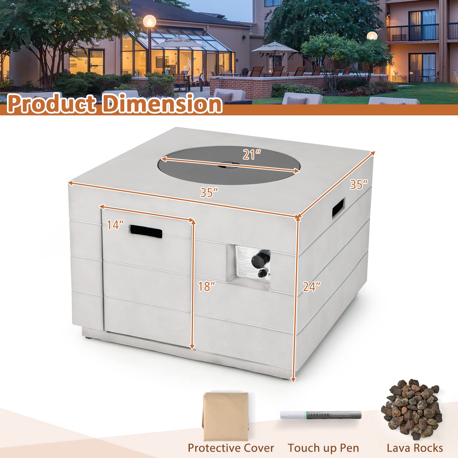 Tangkula 35 Inch Concrete Propane Gas Fire Pit Table, Patiojoy Square Outdoor Propane Fire Table with Protective Cover Lava Rocks & Metal Lid