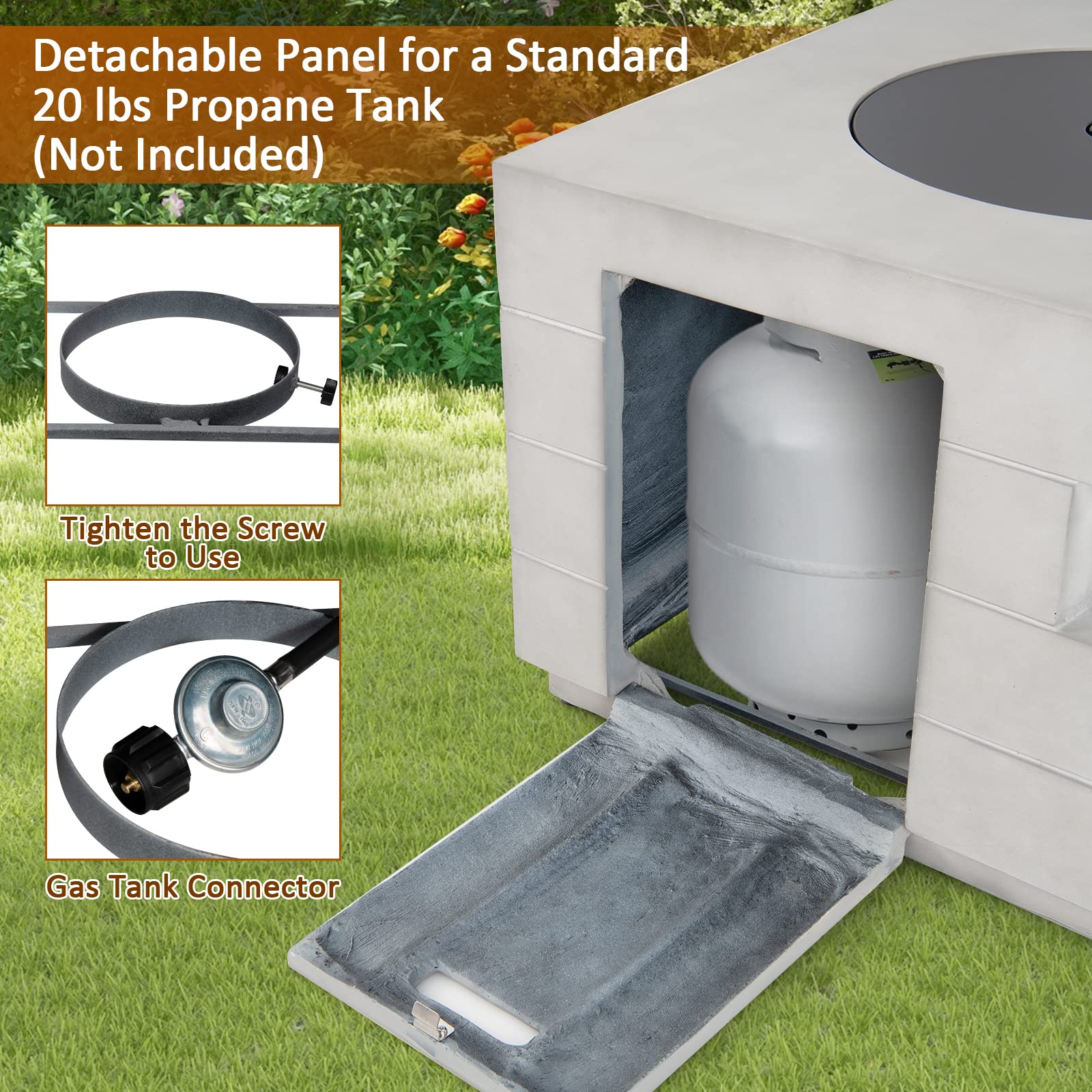 • Sideaway Propane Tank Storage: We have also taken into consideration the need for storing the propane tank securely and tidily. Our product comes with a detachable panel for a standard 20 lbs propane tank (not included). The internal propane tank storage space ensures that the outdoor area remains neat. Additionally, we have included the gas tank connector and tank seat to provide added convenience.