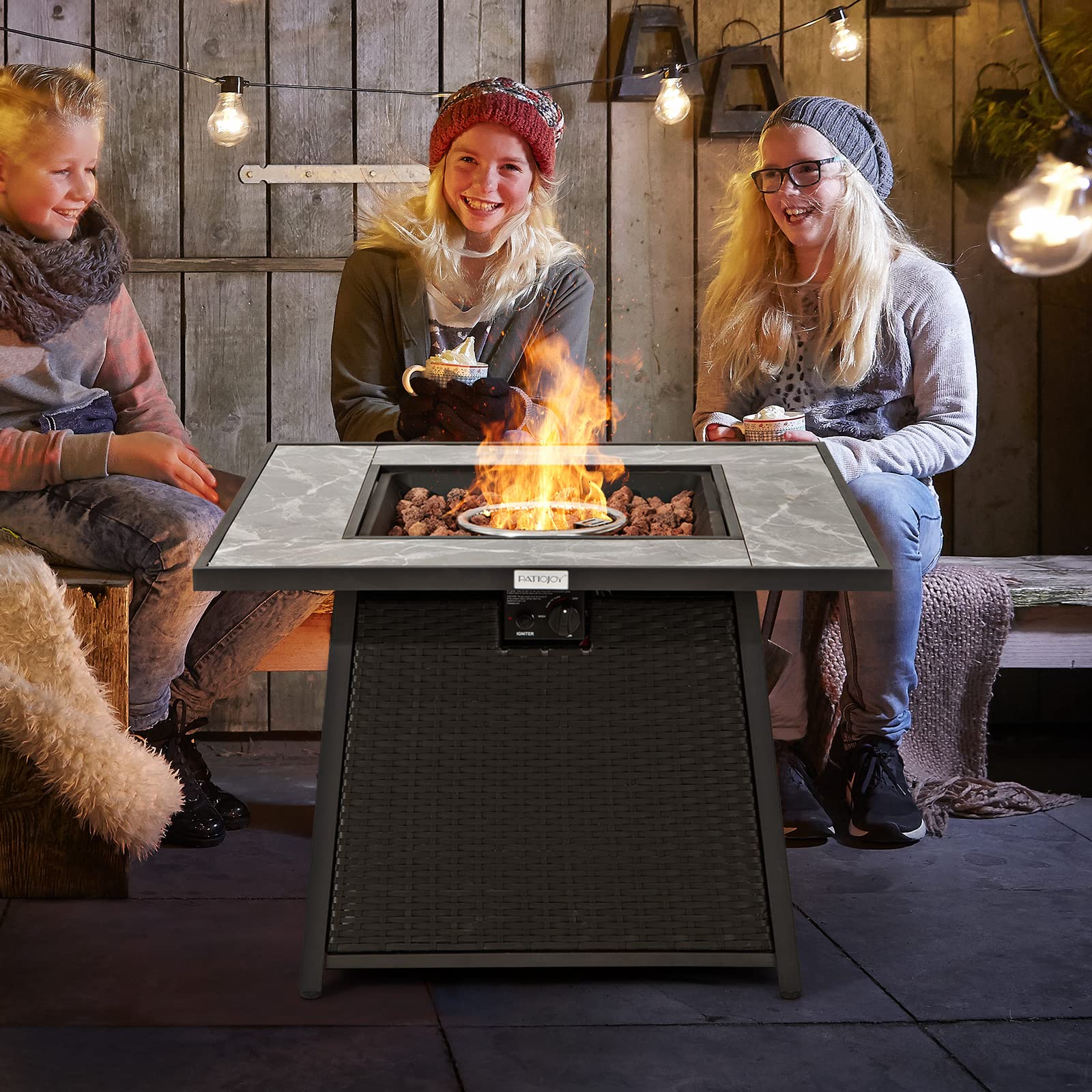 Tangkula 35 Inch Rattan Propane Gas Fire Pit Table, Patiojoy 50,000 BTU Outdoor Wicker Patio Propane Fire Pit