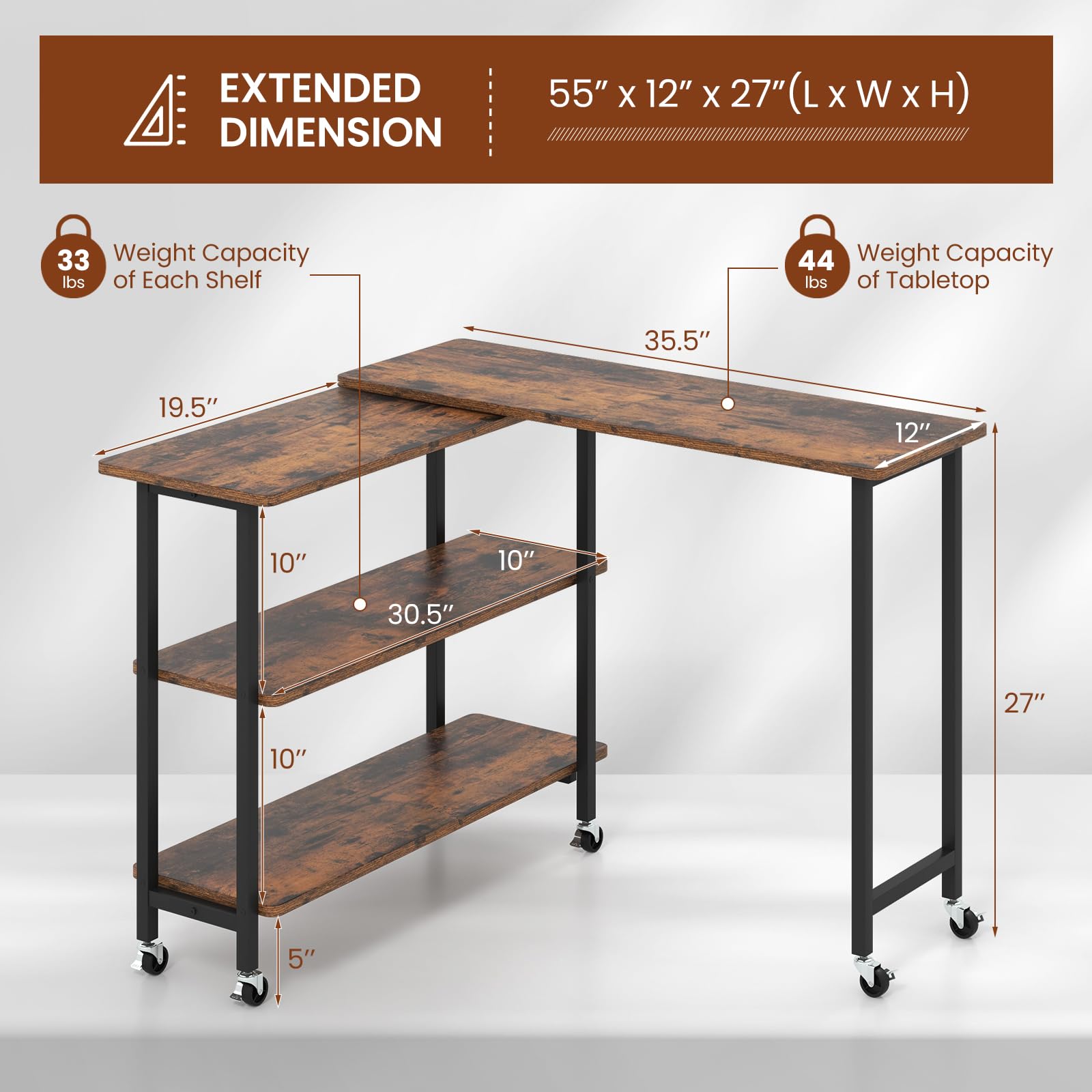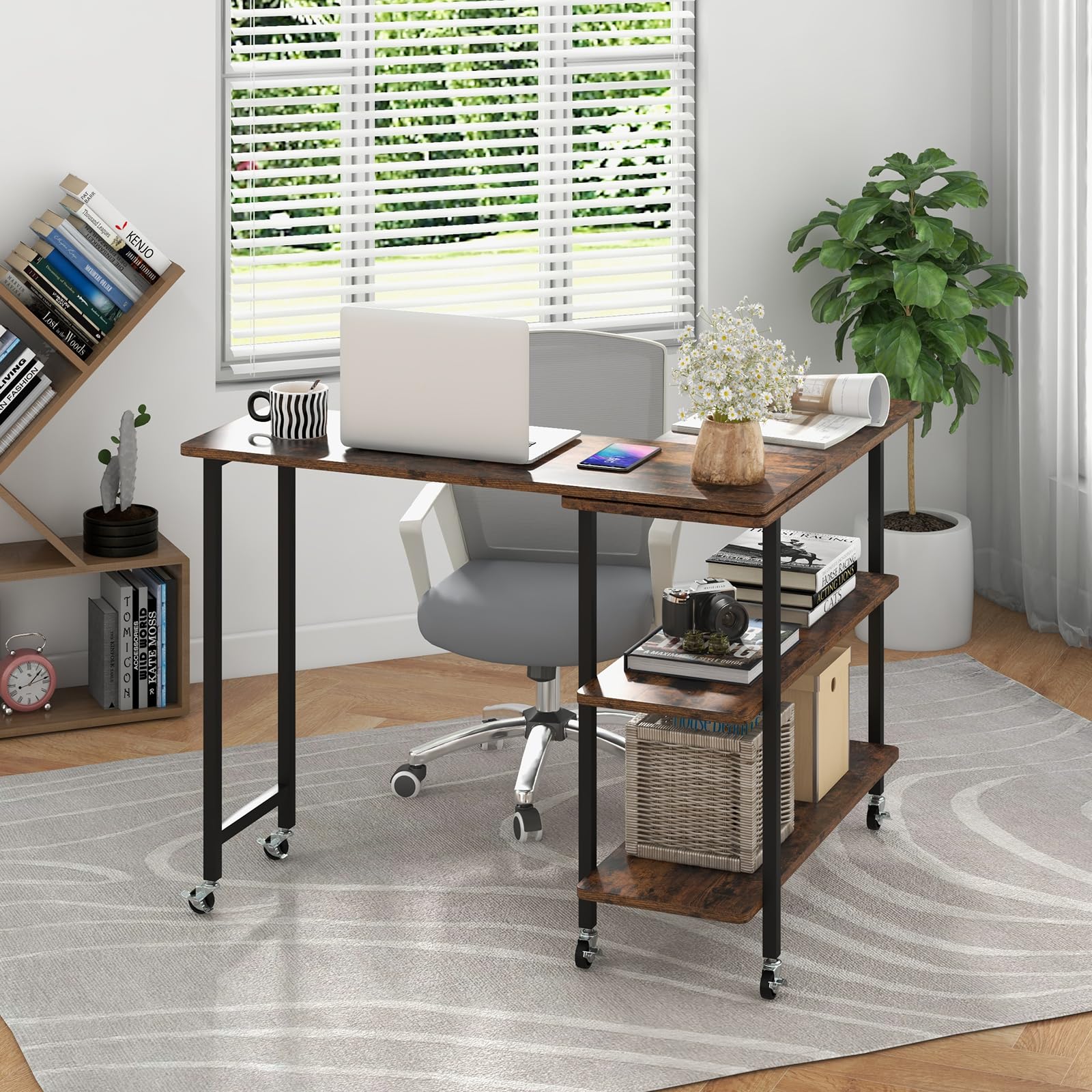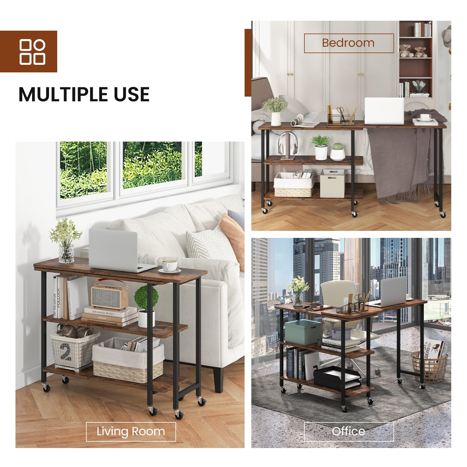 This 360°free rotating sofa side table is a great way to transform your home, which is easy to change the shapes to meet your different needs. As you can see, the mobile laptop table features wide desktop to keep daily supplies you need within reach and 2-tier shelves to enlarge sorted space. For convenient use, the sofa side table is equipped with 6 lockable casters for easy movement and added stability. Not only a sofa side table, but also can be used as an end table, conversation set, computer desk, or bedside table in your home and office.