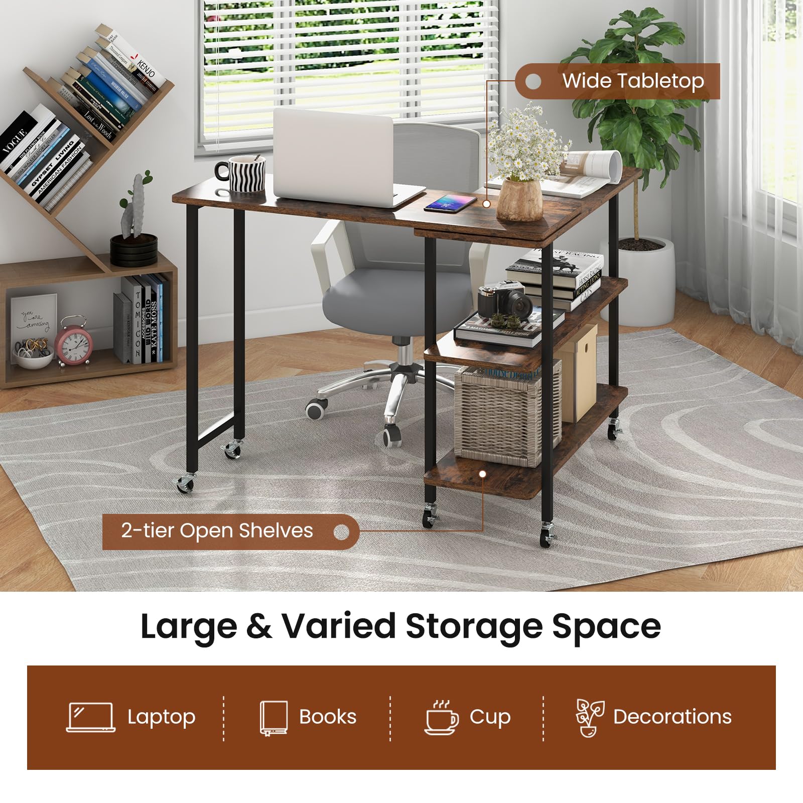 - Large & Varied Storage Space: Wide tabletop not only facilitates the placement of laptop, books, cups and decorations, but also offers enough working space for home office activities. Plus, 2-tier open shelves free up more tabletop and release you from trouble of messy small stuffs.