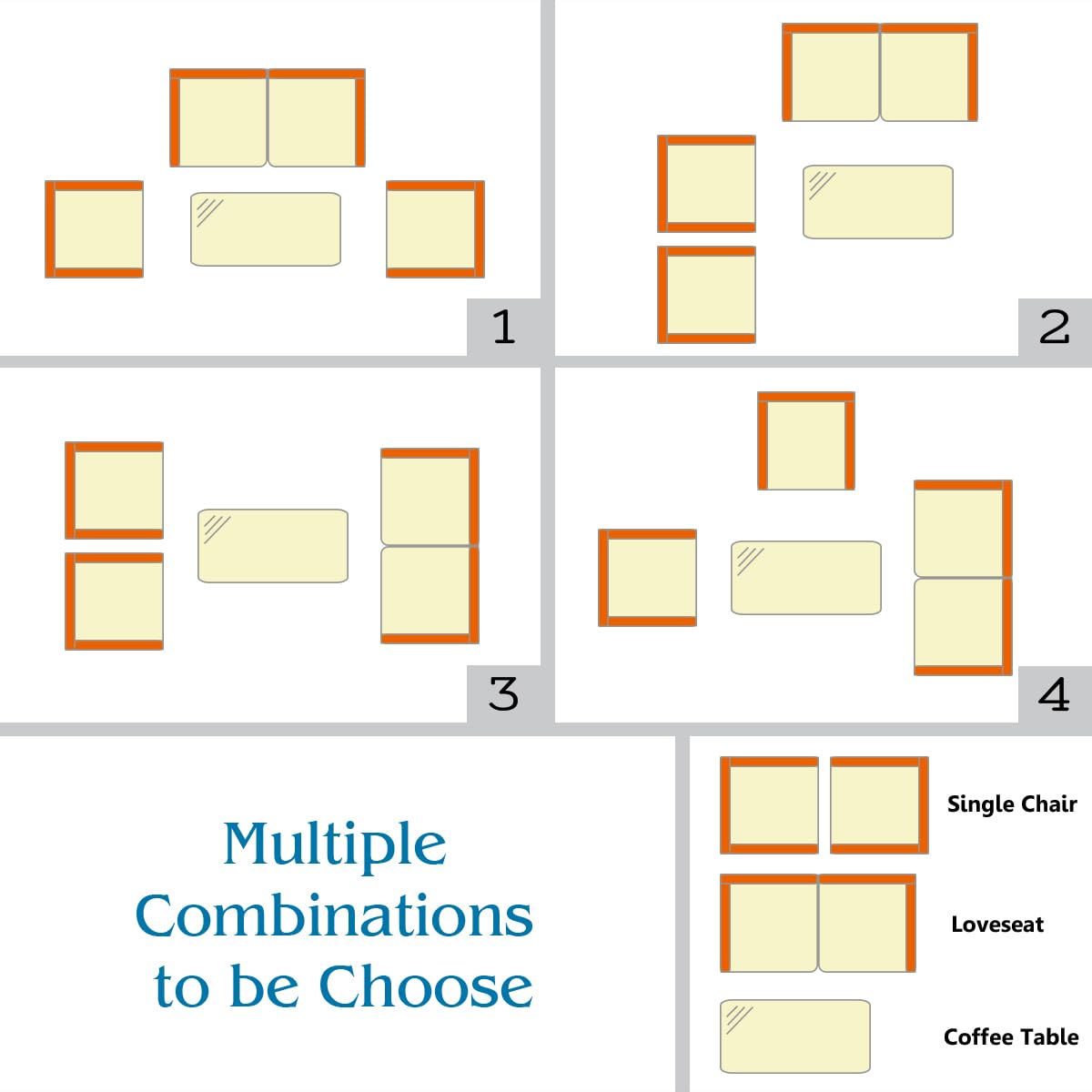 Including 1 loveseat, 2 single sofas and 1 coffee table for versatile use