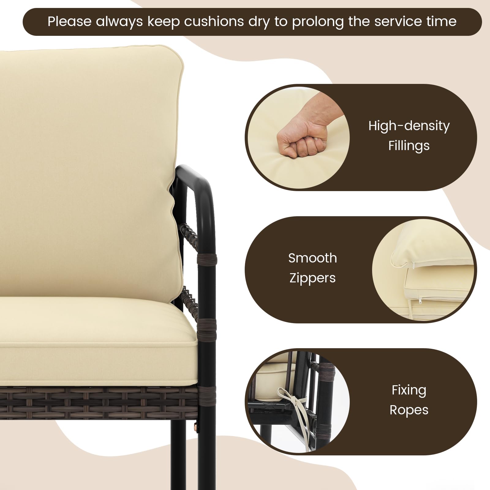 - Born for the Outdoors: The sun-protective and colorfast PE rattan as well as the heavy-duty and rustproof metal frame endow this patio furniture set with better outdoor performance, ensuring durability and longevity.