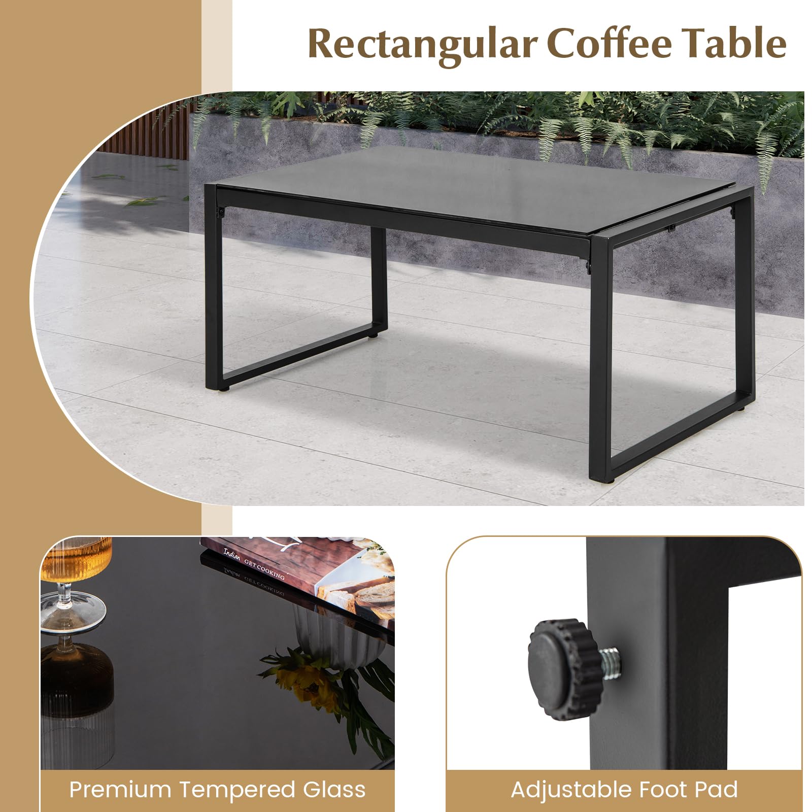 Whether you're hosting a gathering or just want to relax and enjoy the outdoors, this outdoor conversation set provides the perfect seating option. Padded with quick-drying foam and covered with colorfast PE wicker, the loveseat and 2 armchairs withstand outdoor elements for higher durability. Moreover, the sturdy and rustproof metal frame endows this patio furniture set with strong stability. And the tempered glass tabletop facilitates easy cleaning. What’s more, this 4-piece outdoor conversation set comes with different combinations to fit places of different sizes, such as the backyard, poolside and patio, etc.