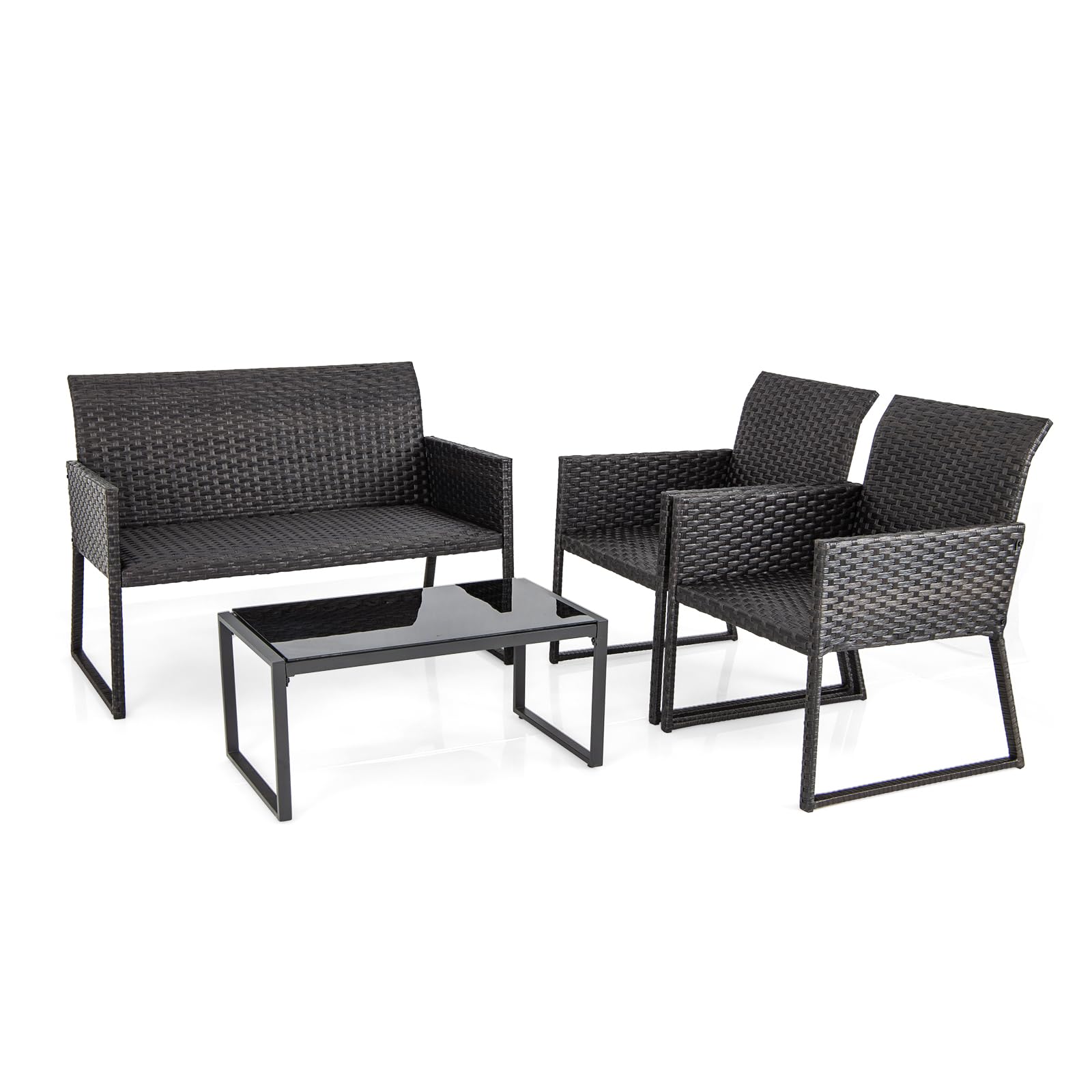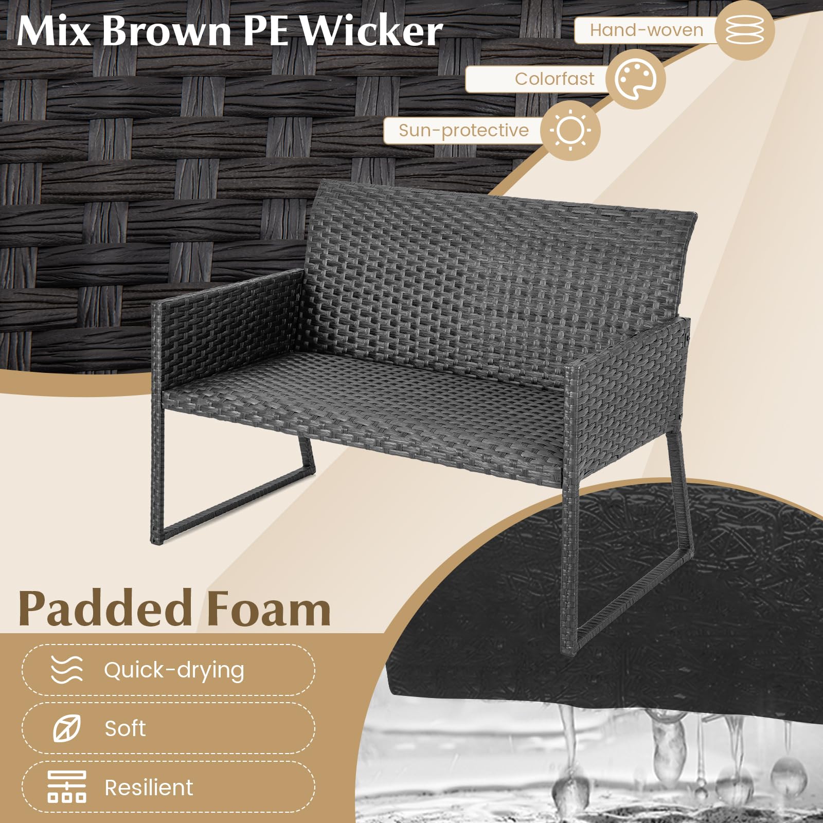 Tangkula 4 Pieces Wicker Patio Furniture Set with Quick-Drying Foam