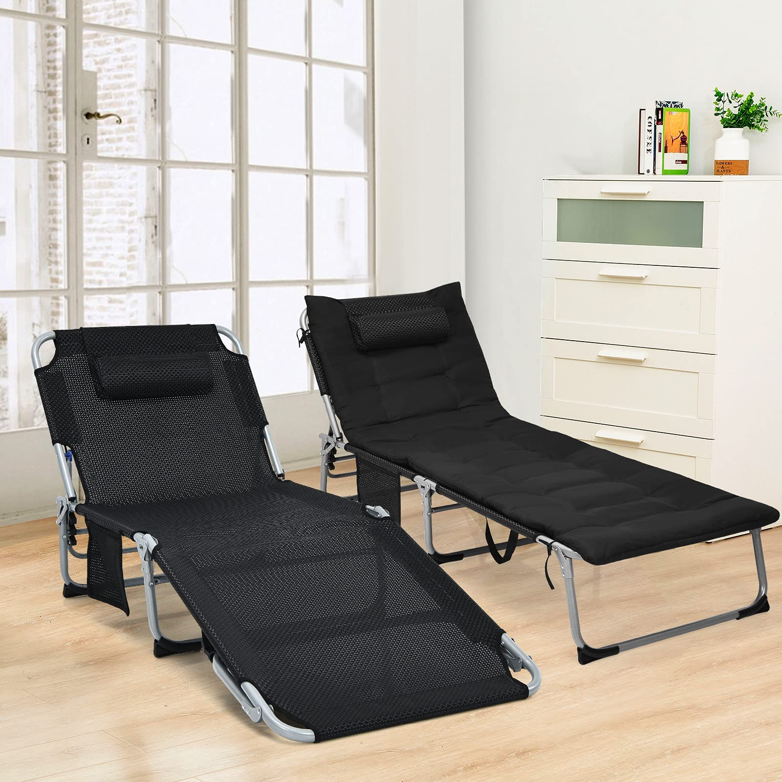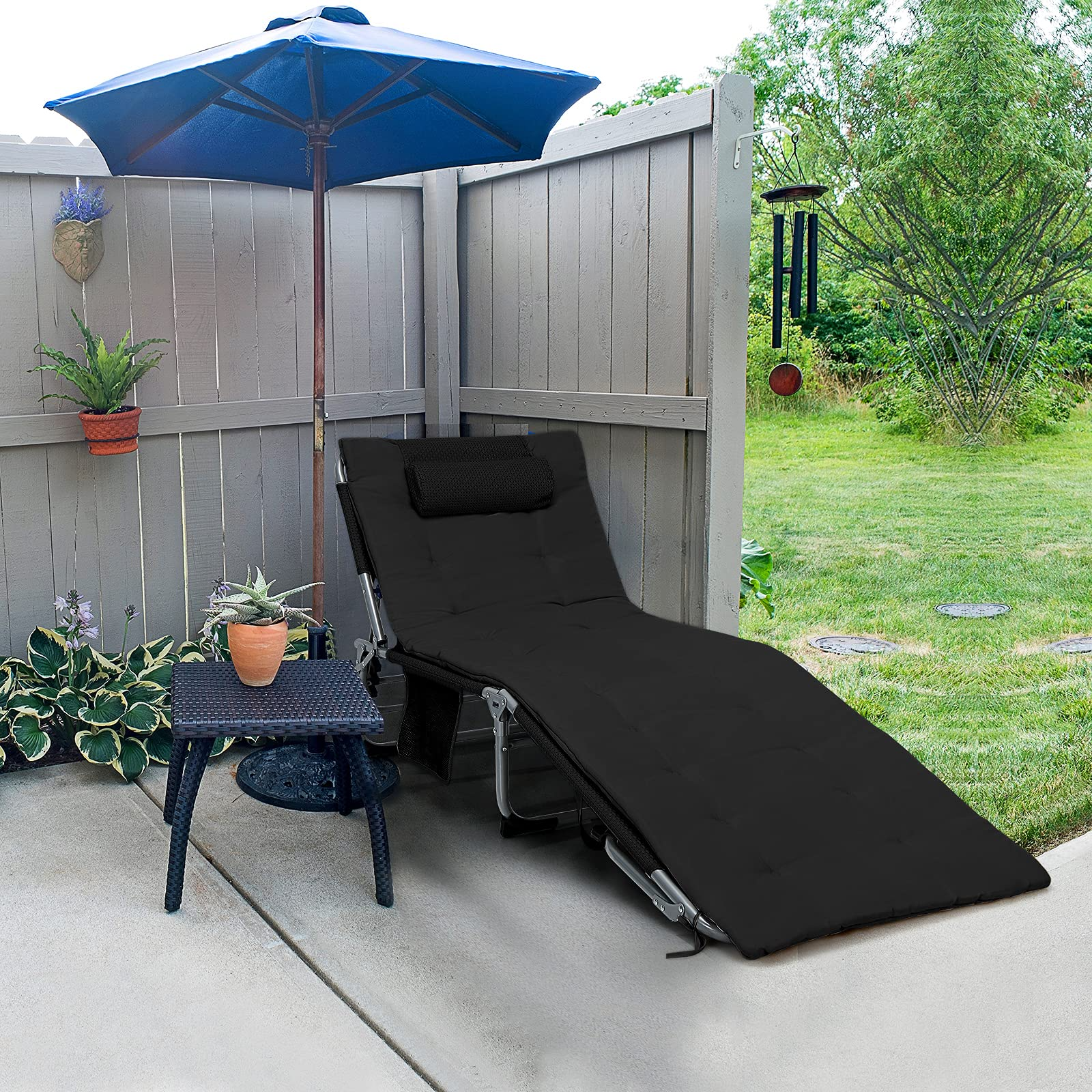 - Premium Fabric & Sturdy Frame: Crafted with high-quality oxford fabric that is wear-resistant, waterproof, and breathable, the adjustable chaise lounge allows you to fall asleep comfortably. Besides, equipped with 3 thick metal legs for strong & stable support and a high bearing capacity of 330 LBS.