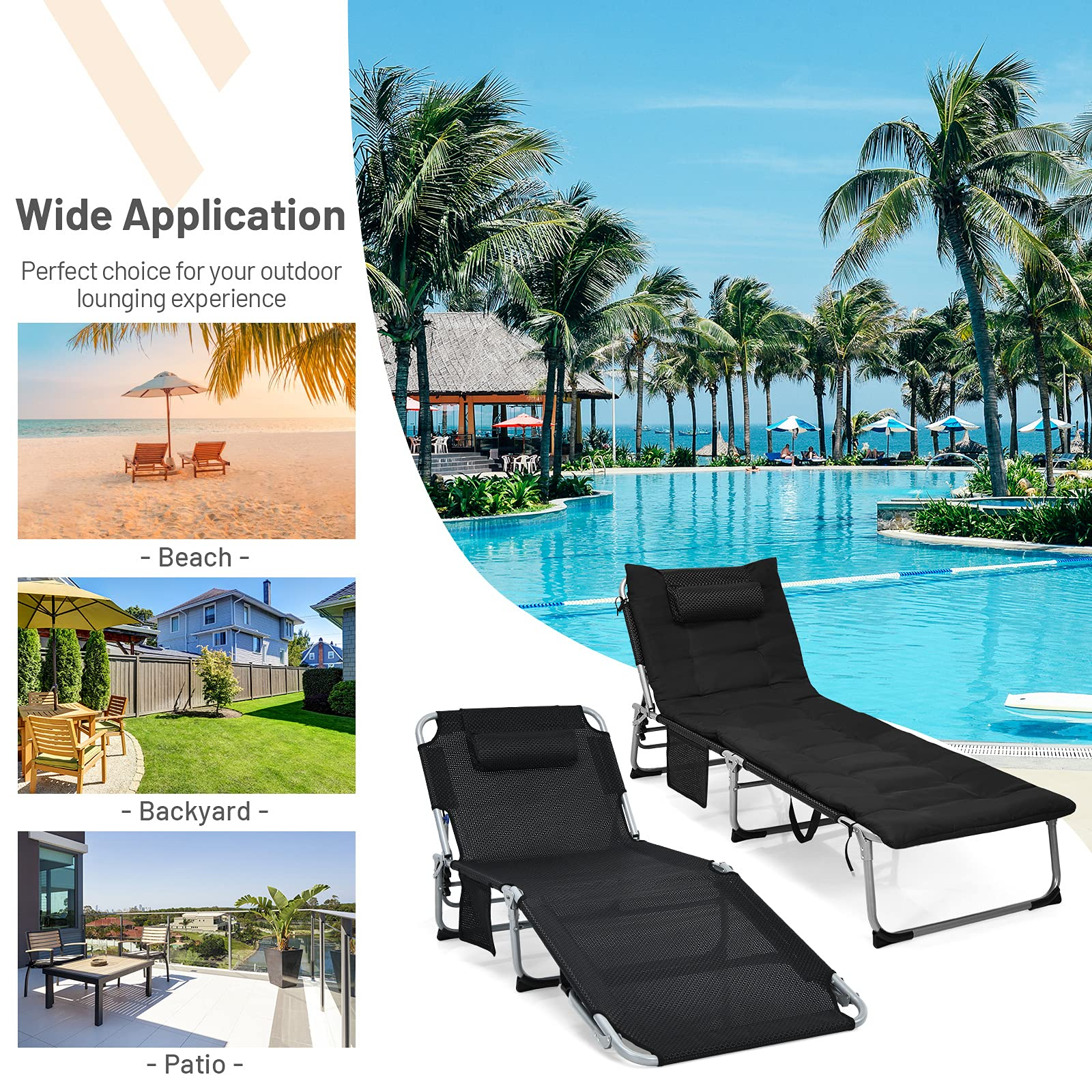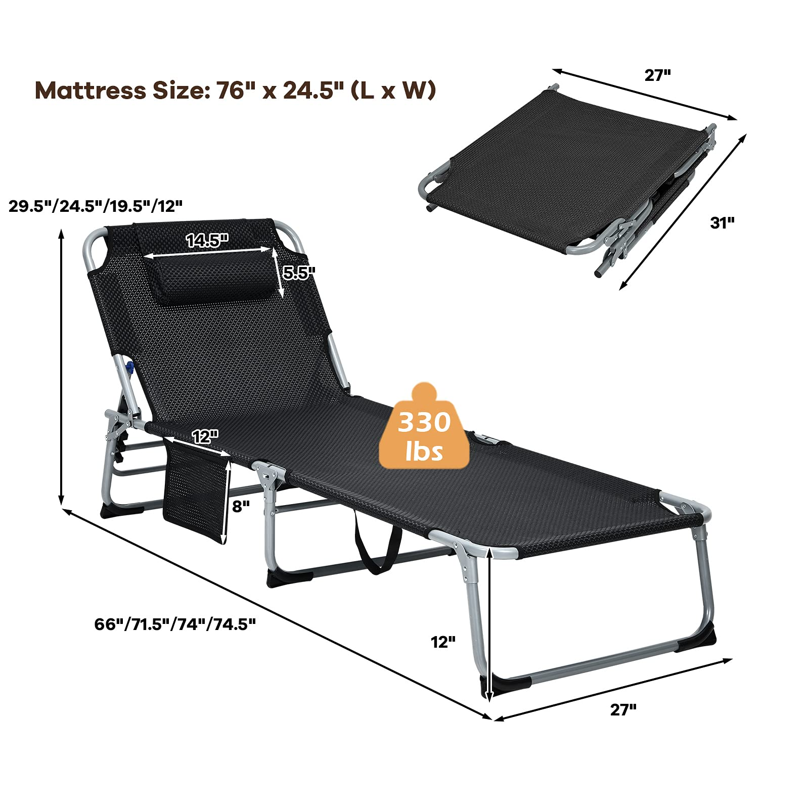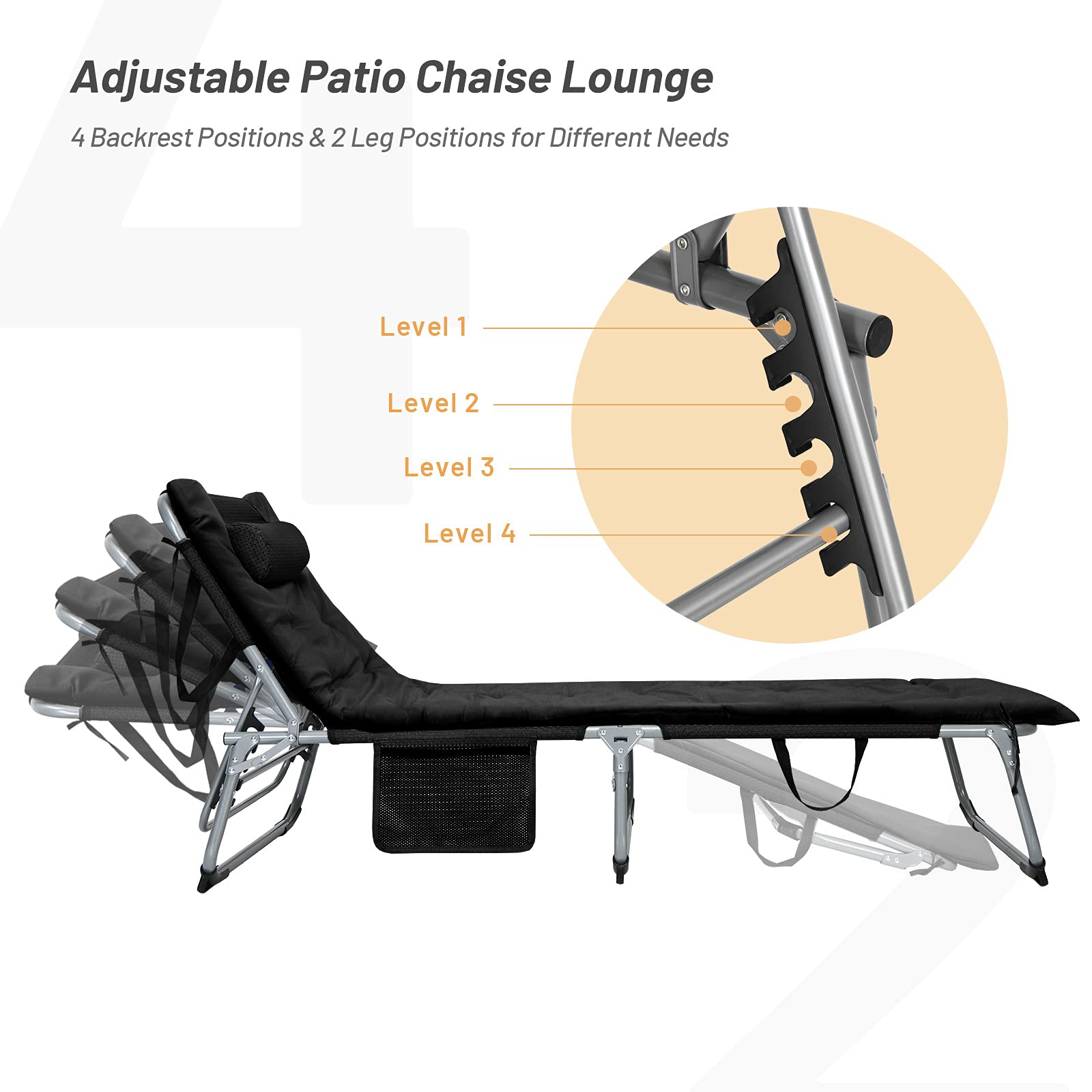- 4-Position Adjustment: Designed with a 4-position adjustable locking system and adjustable footrest, the chaise lounge allows you to adjust it to a comfortable position. Besides, the chaise lounge measures 74.5"x 27"x 29.5" when laying flat which provides sufficient space to rest.