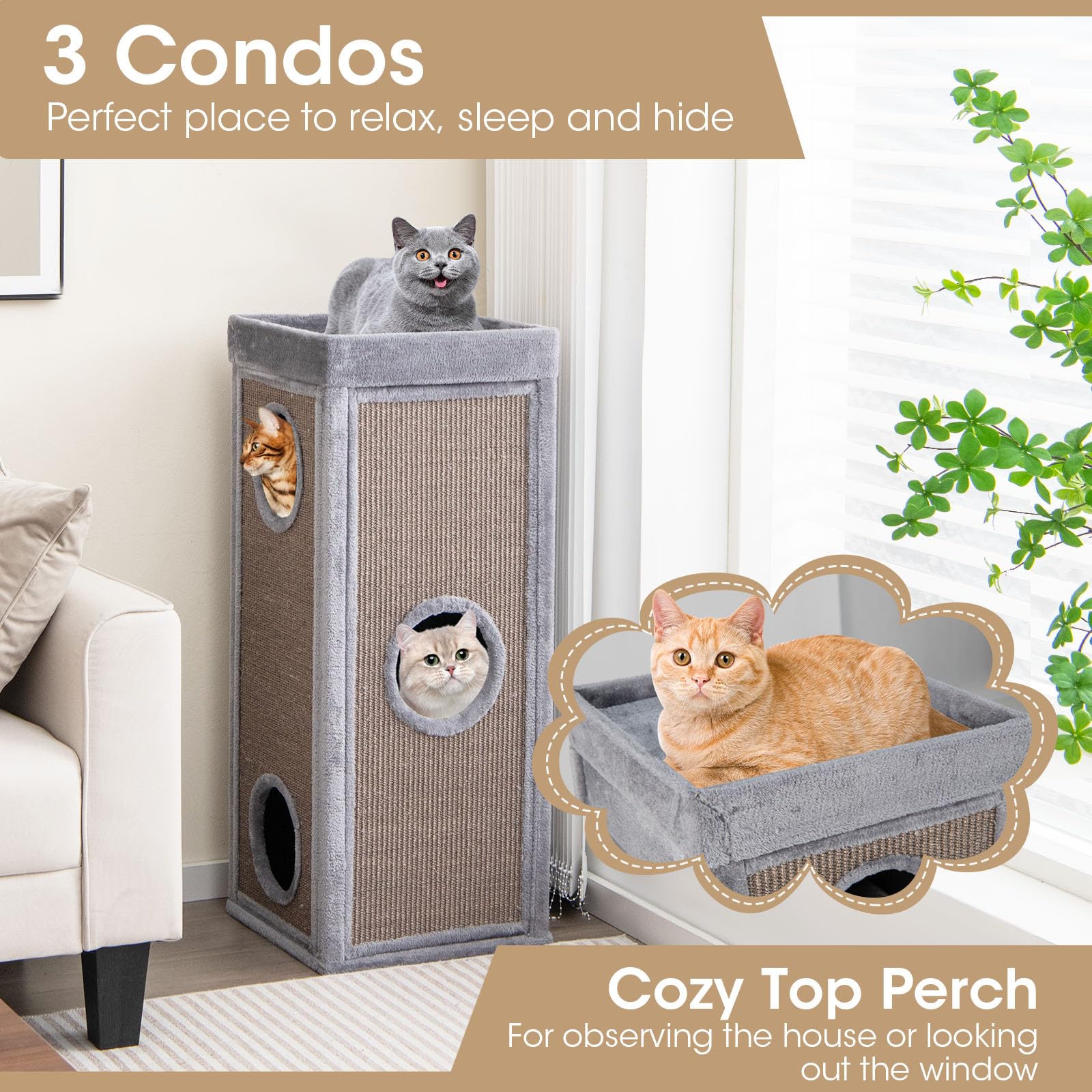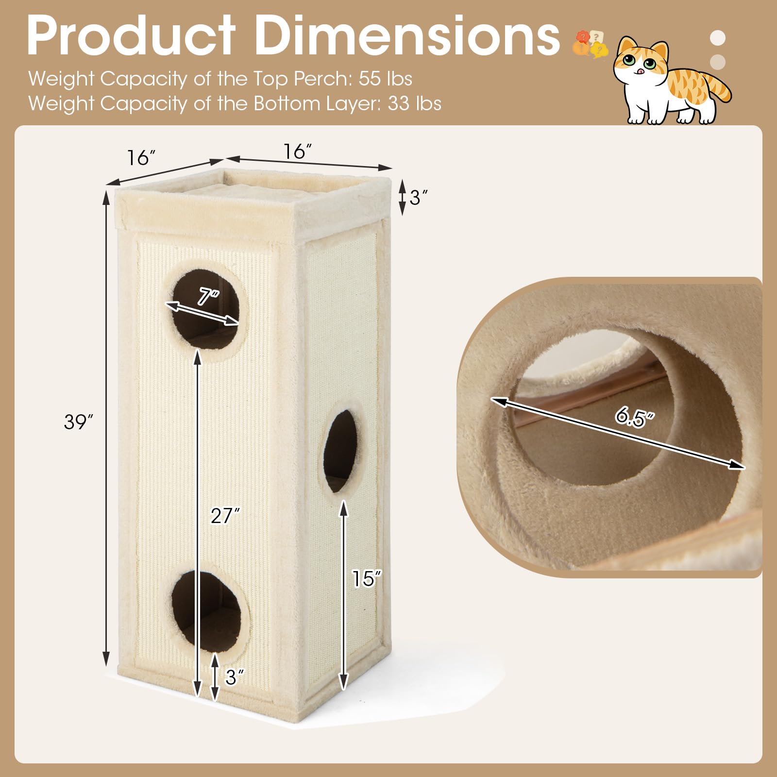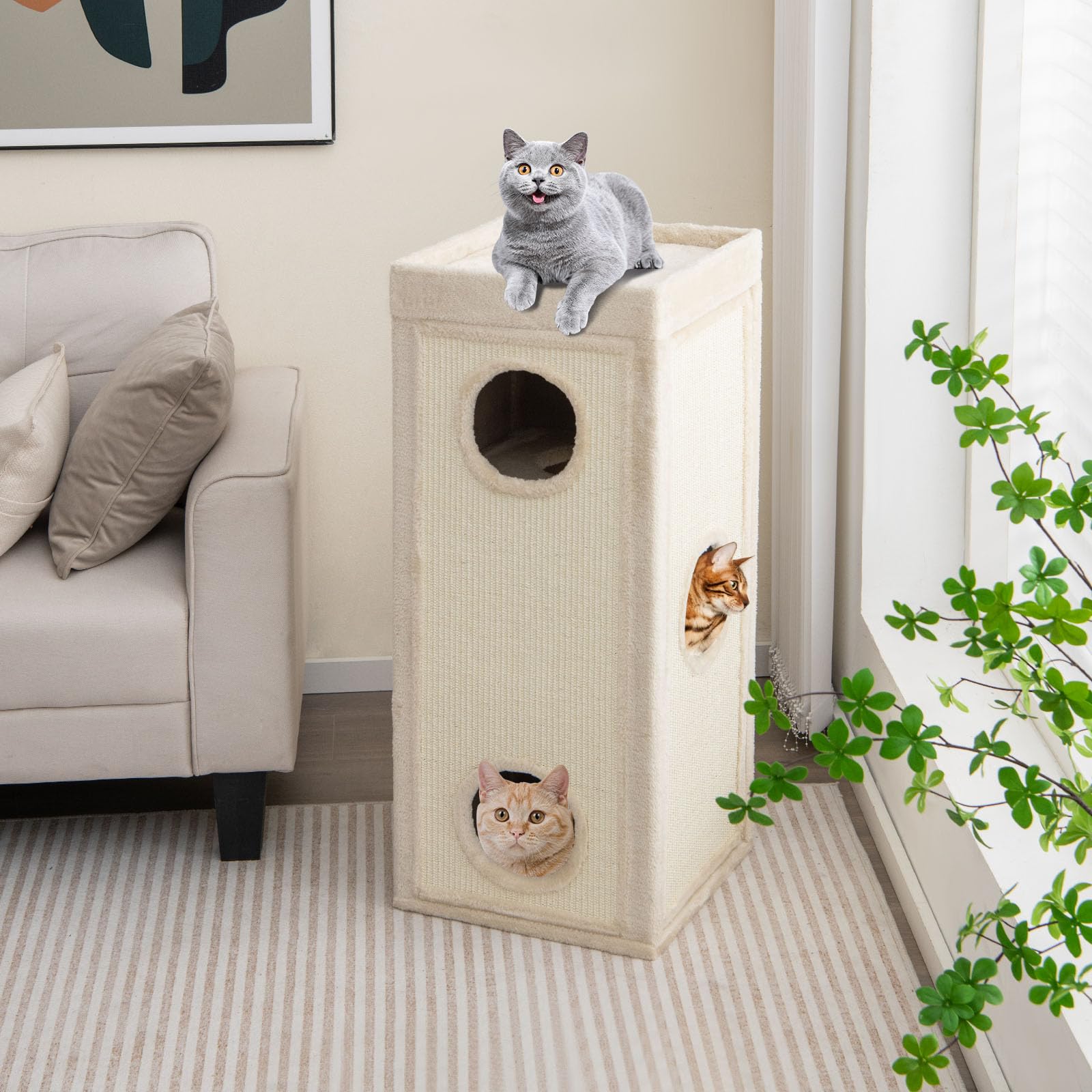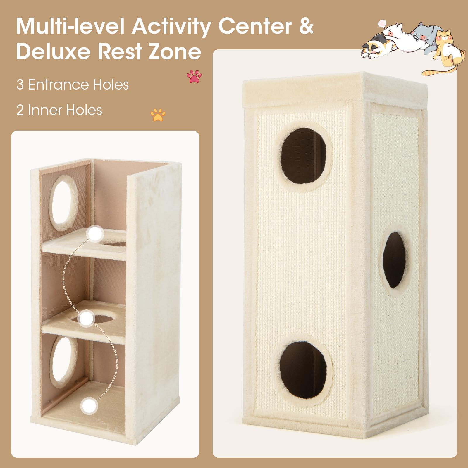 - Ideal Recreation Paradise: Thanks to the 39" height, the 4-story pet house is convenient for kittens to climb onto the top perch and look out the window. Featuring 3 entrance holes and 2 inner holes, the cat tower can support your cats to climb up and down with ease.