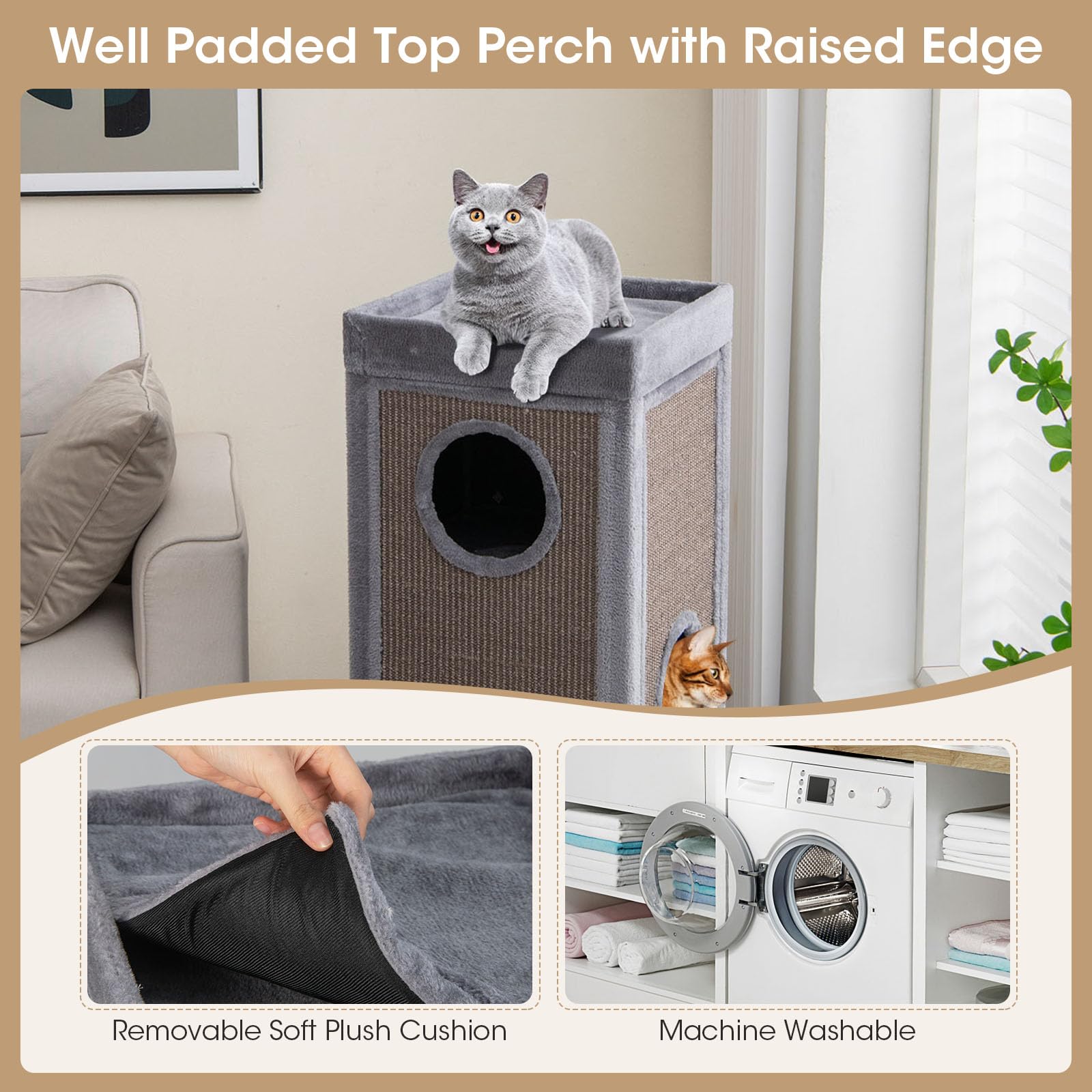 - Deluxe Rest Zone: The cat house comes with 3 condos, making it a perfect place to relax, sleep and hide. Besides, the soft well padded top perch with raised edge allows your kitty to observe the house and enjoy the scenery out of the window.