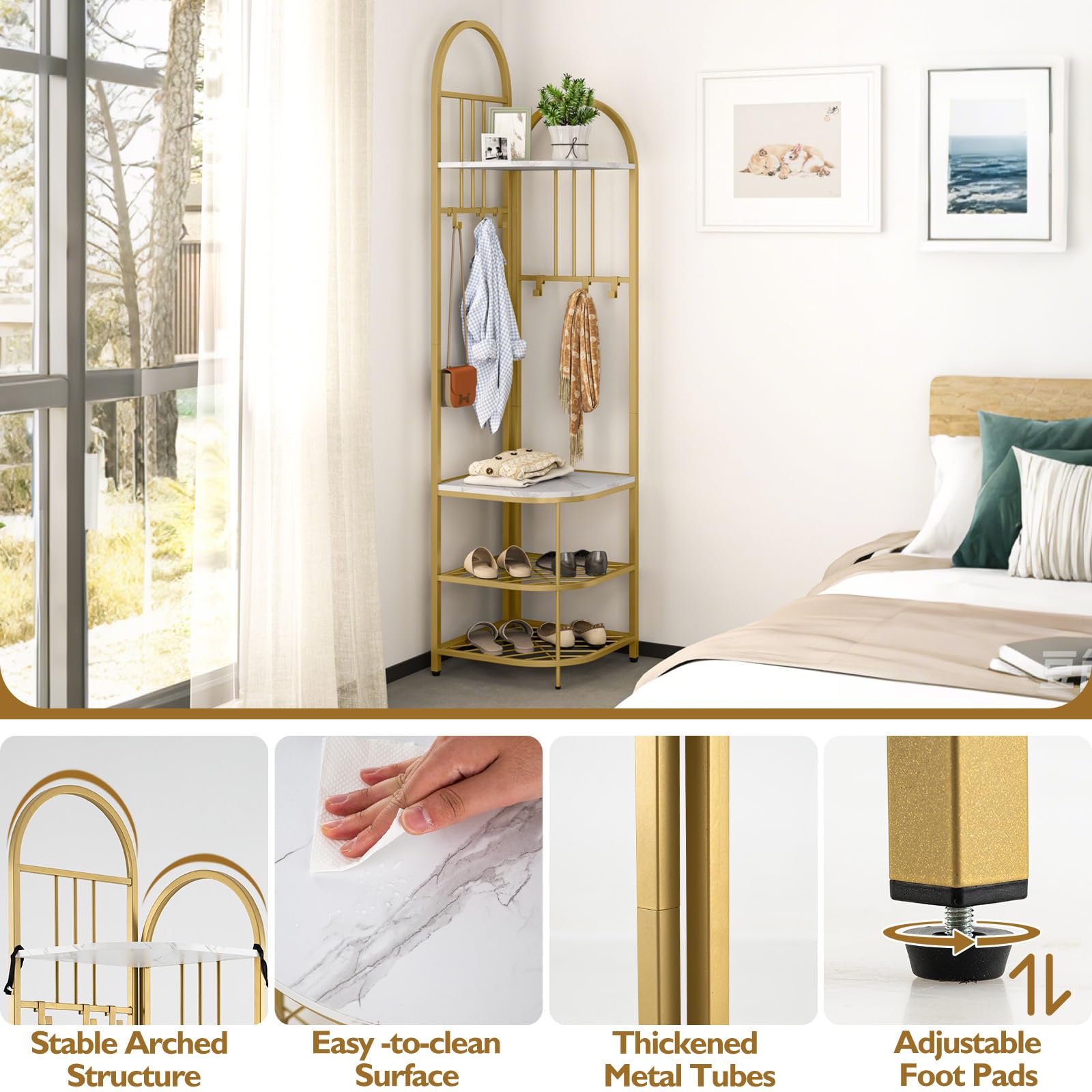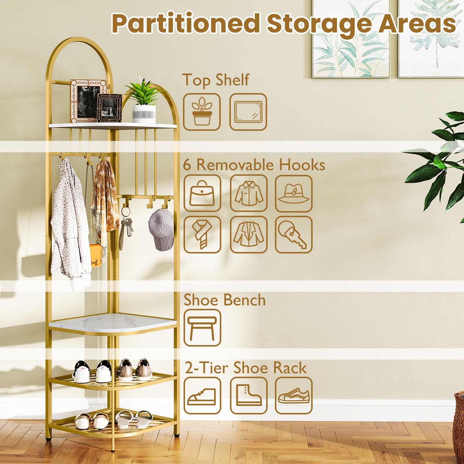 Multifunctional corner hall tree for living room, bedroom, and entryway