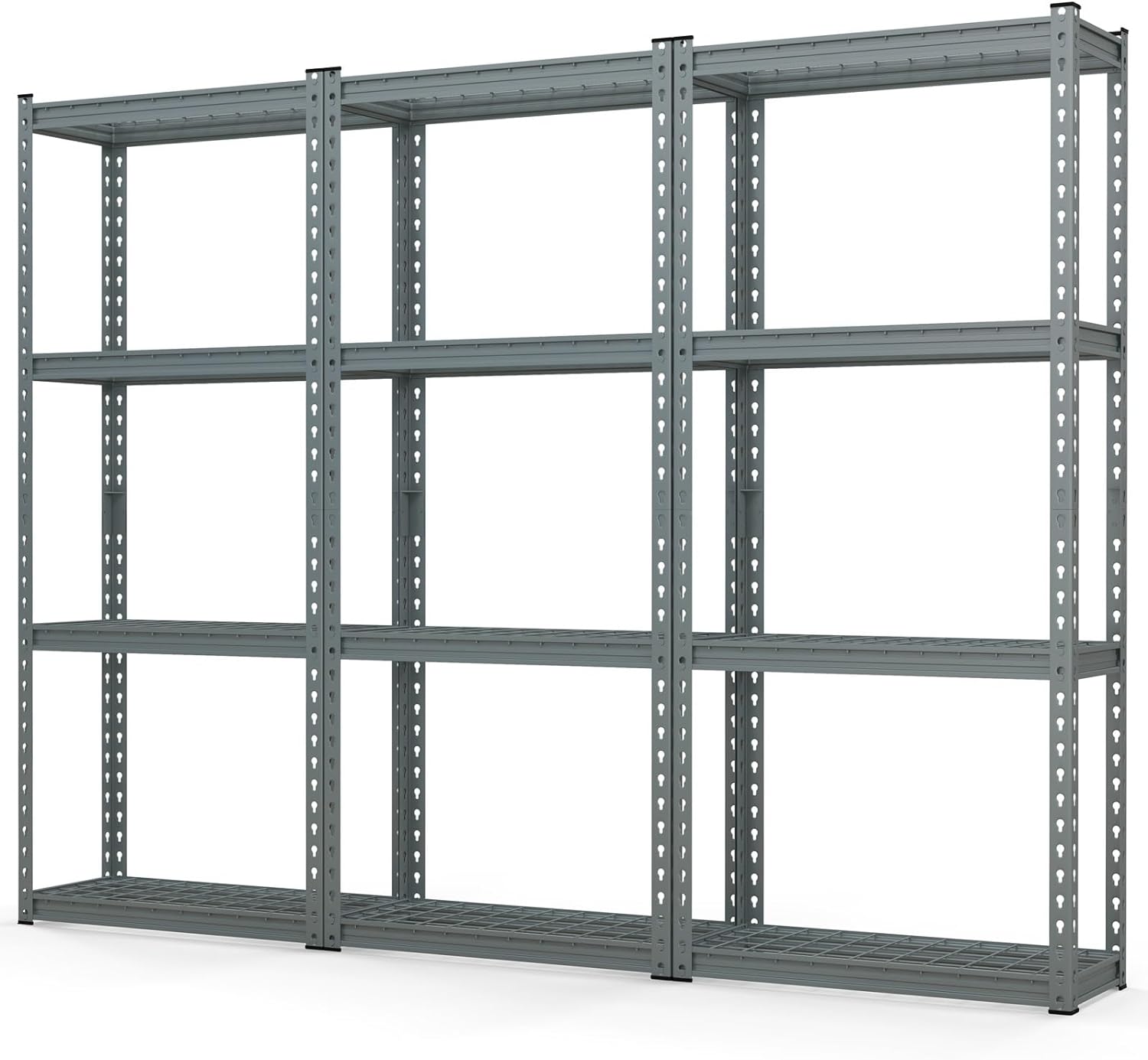 - Durable Material & Upgraded Security: Solid metal with rust-proof powder coating ensures good deformation resistance and long-lasting use. 2 anti-tipping devices keep the garage shelving stable and safe to use. Plus, anti-slip foot pads not only enhance stability, but also protect the floor.