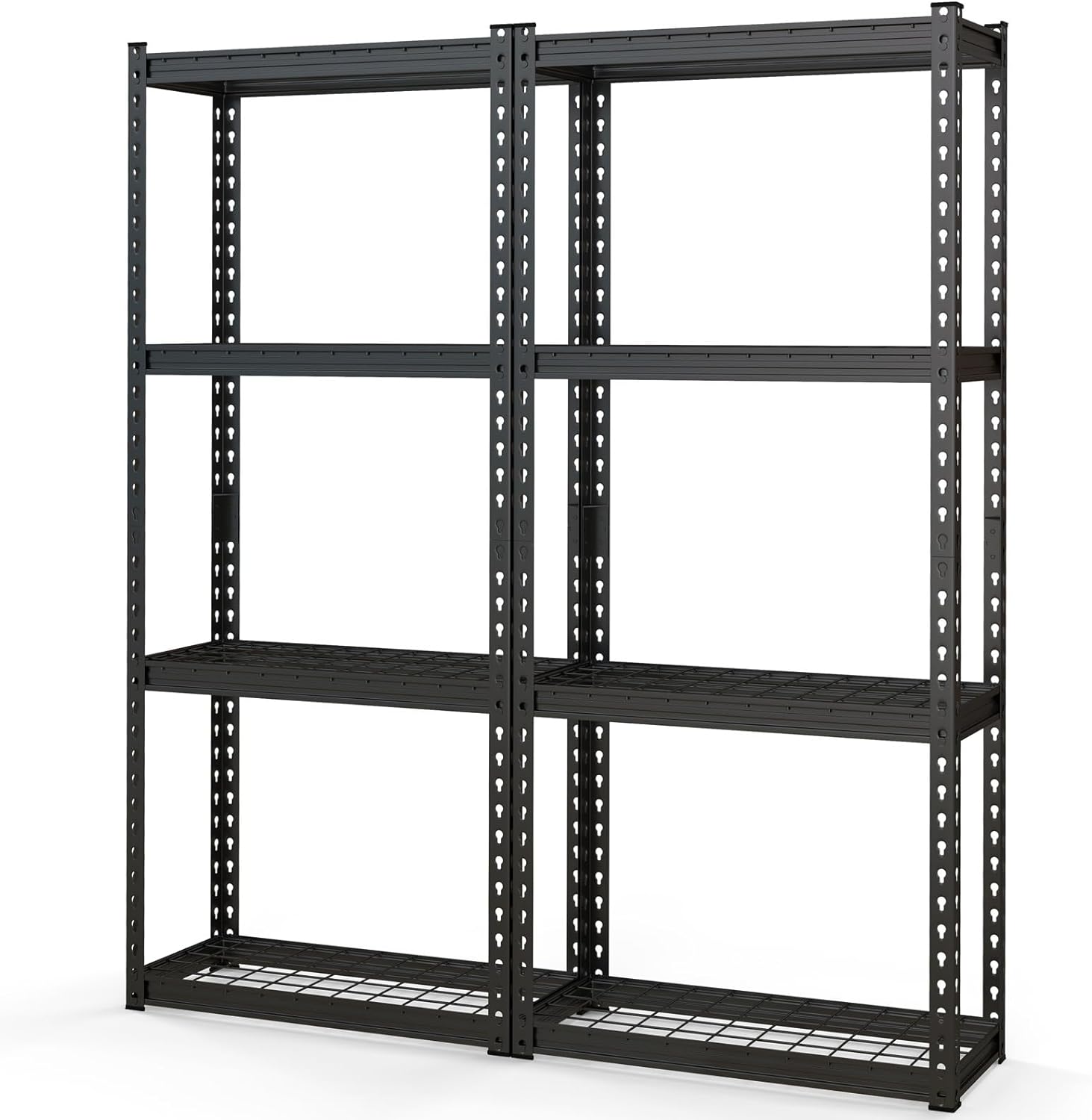 - Flexible Transformation & Adjustable Height: The 4-tier garage shelving can be divided into 2 small shelves for flexible use. Besides, you can adjust the height of the shelves to meet different storage needs of different sized items.