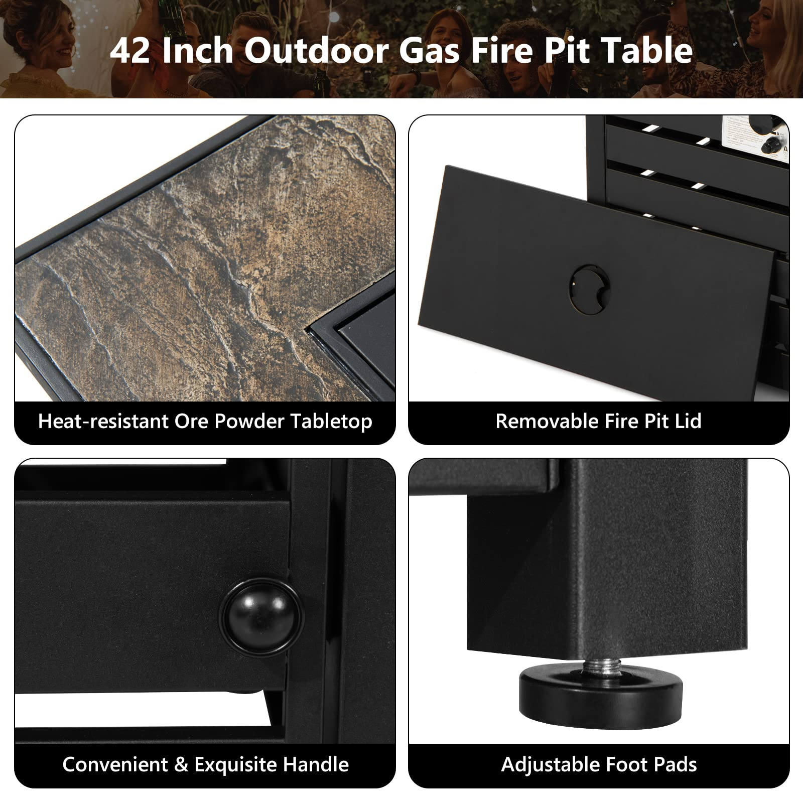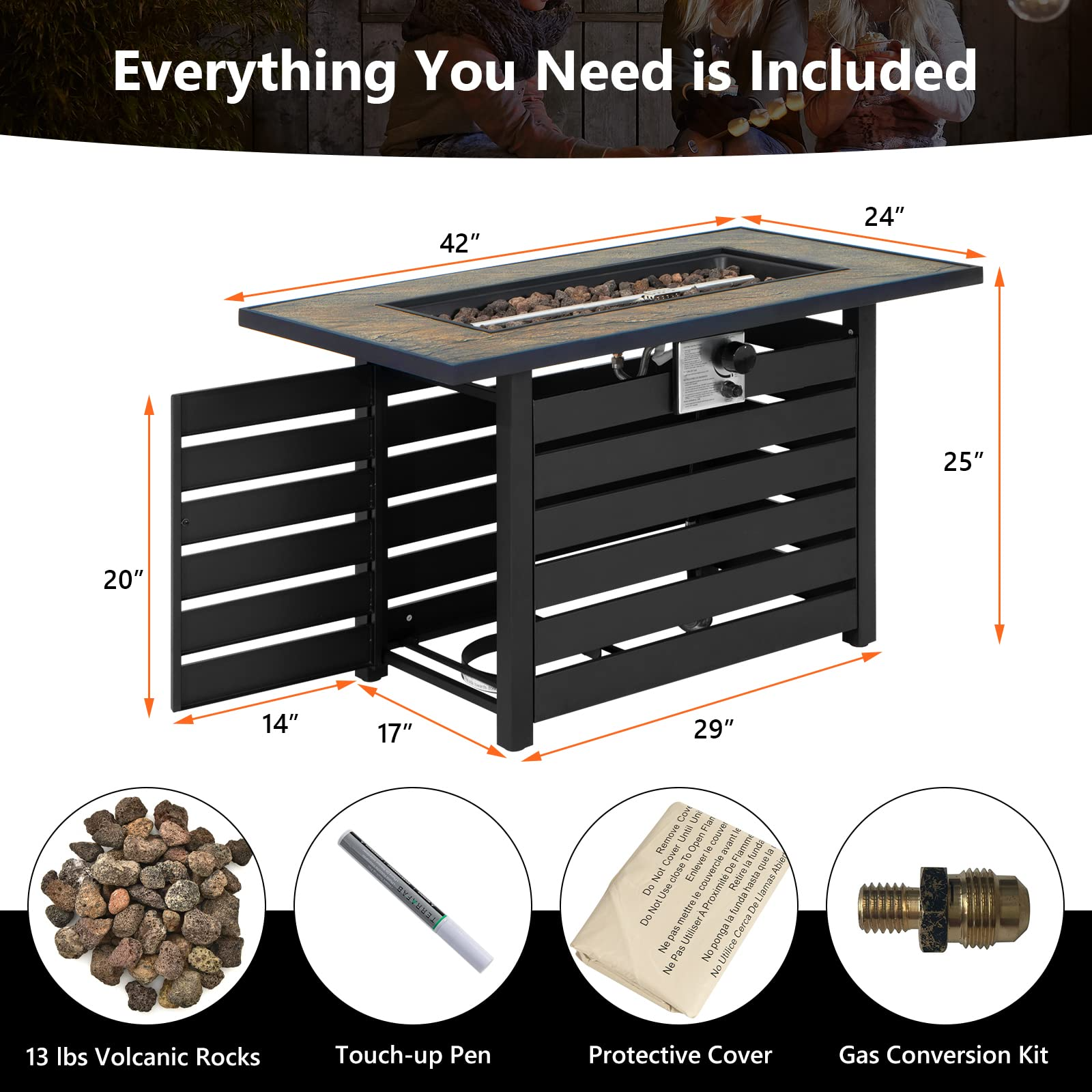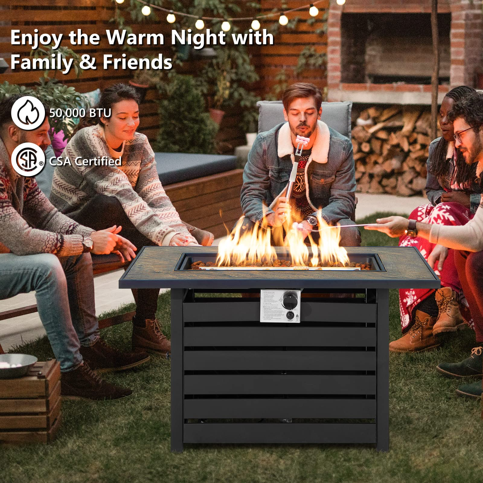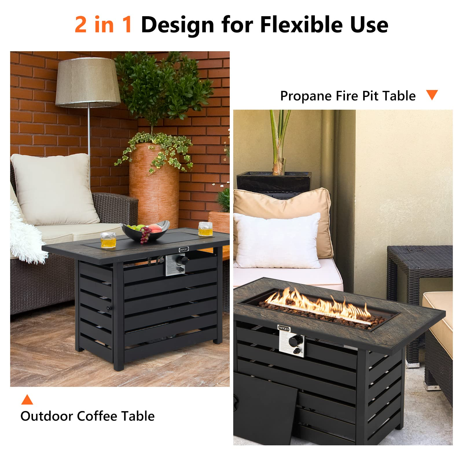 Tangkula 42 Inch Outdoor Gas Fire Pit Table, Patiojoy 50,000 BTU Rectangular Propane Fire Pit
