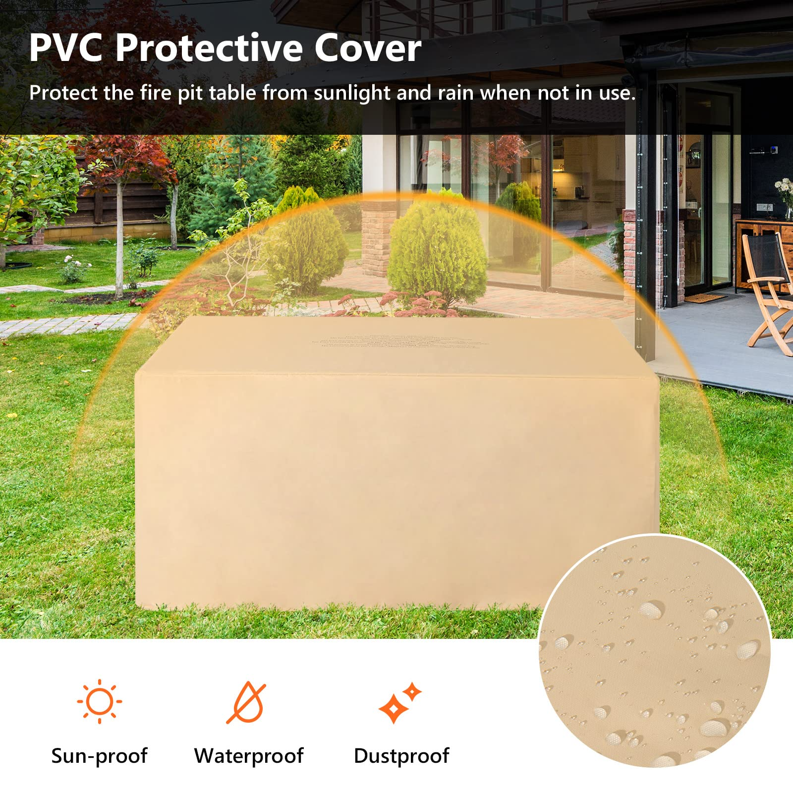 • Robust Construction & Waterproof Cover: Constructed of a heavy-duty steel frame, this outdoor gas fire pit table ensures excellent stability and is not easy to rust. The bottom adjustable foot pads make the fire pit more stable. In addition, there comes a PVC protective cover to protect the fire pit table from sunlight and rain when not in use.