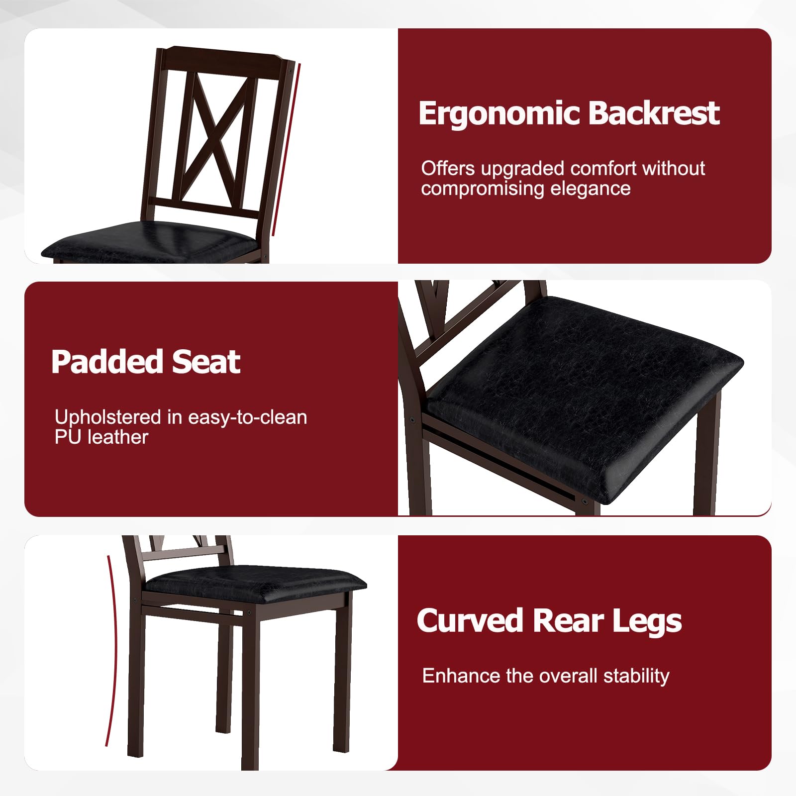 Are you looking for a stylish and practical dining table set for your home? This 5-piece dining table set, consisting of a dining table and 4 padded chairs, is an ideal choice. The dining table, with its sturdy rubber wood legs, provides enhanced stability for long-term use, and its wide and elegant tabletop offers ample space for daily meals. Besides, the 4 upholstered chairs feature hollowed backrests and wide seats with high-density sponge cushions, ensuring a comfortable seating experience. Moreover, this dining room set combines elegant lines with a farmhouse style, making it suitable for various rooms like the living room, dining room, and even restaurants. When not in use, the chairs can be stored under the table, saving space and creating a tidy environment, perfect for small rooms or apartments.