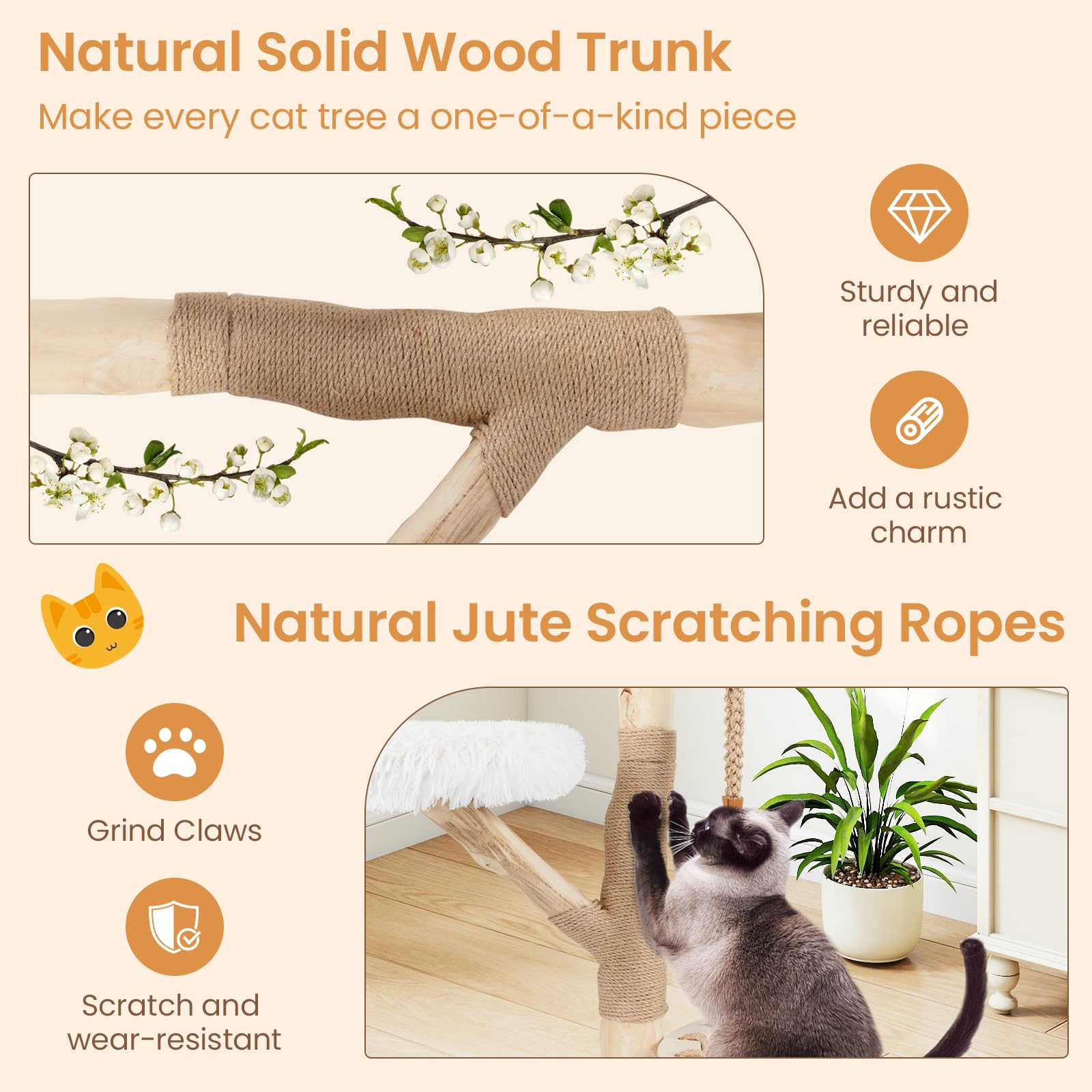 Wrapped with natural and safe jute ropes, scratch and wear-resistant
