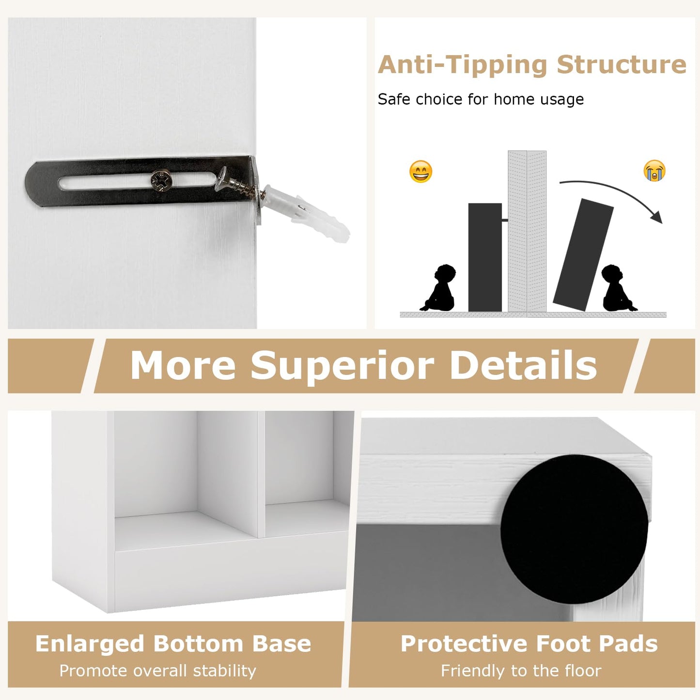 - Optimal Stability for Safety: The floor bookcase boasts enhanced stability with the inclusion of 2 anti-tipping kits and an enlarged base, creating a secure foundation for your belongings and peace of mind for you.