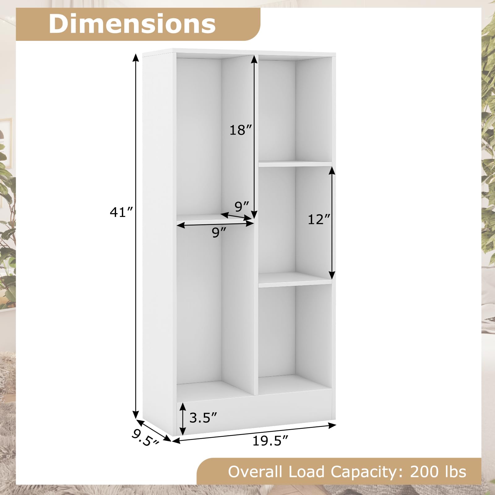Bring harmony to your space with the 5-cube bookshelf, a versatile storage solution that caters to your books, albums, and decorations. Sturdy boards ensure a large load capacity of 200 lbs, while 2 anti-tipping kits and a large base ensure stability. This floor bookcase features 5 spacious cubes in 2 sizes, providing large storage space. Its smooth surface only requires a simple maintenance. More superior details await your discovery.