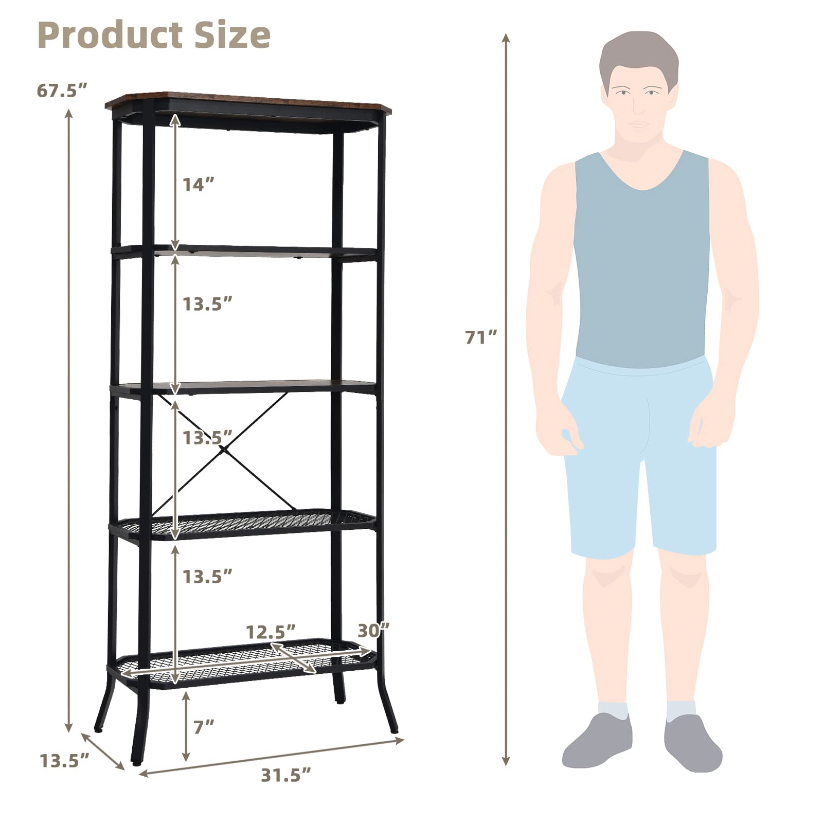- Super Convenient Assembly: An easy-to-understand instruction and essential accessories are included in the package which will help you finish assembling the 31.5" x 13.5" x 67.5" bookcase. Also, with a smooth surface, it is effortless for you to clean the 5-layer shelf in daily life.