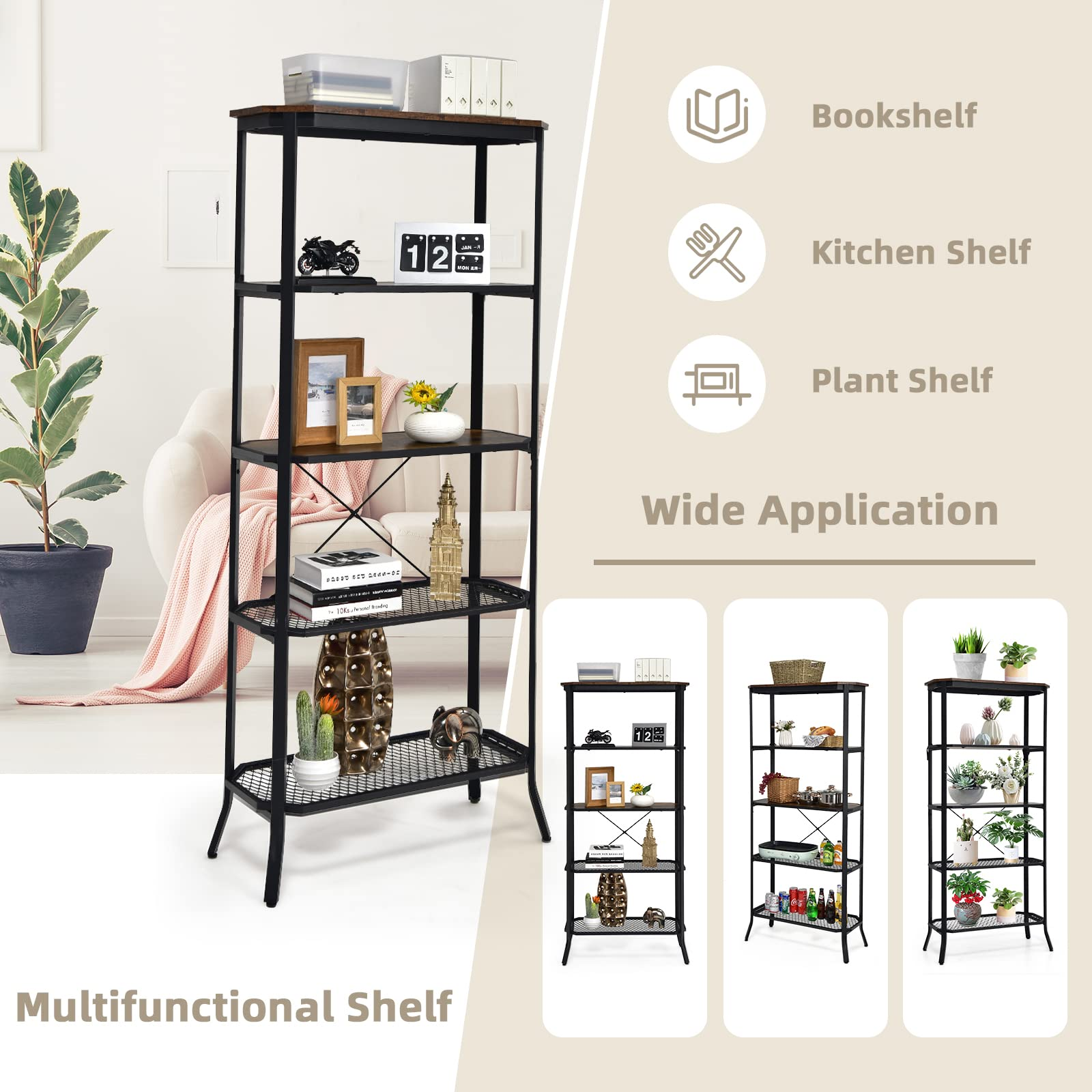 - 5 Layers of Open Wide Shelves: There are five open shelves that provide sufficient storage space for a variety of items, such as books, plants, and sundries. In addition, the separate design between each shelf also enables you to further sort and store things in a more organized manner.