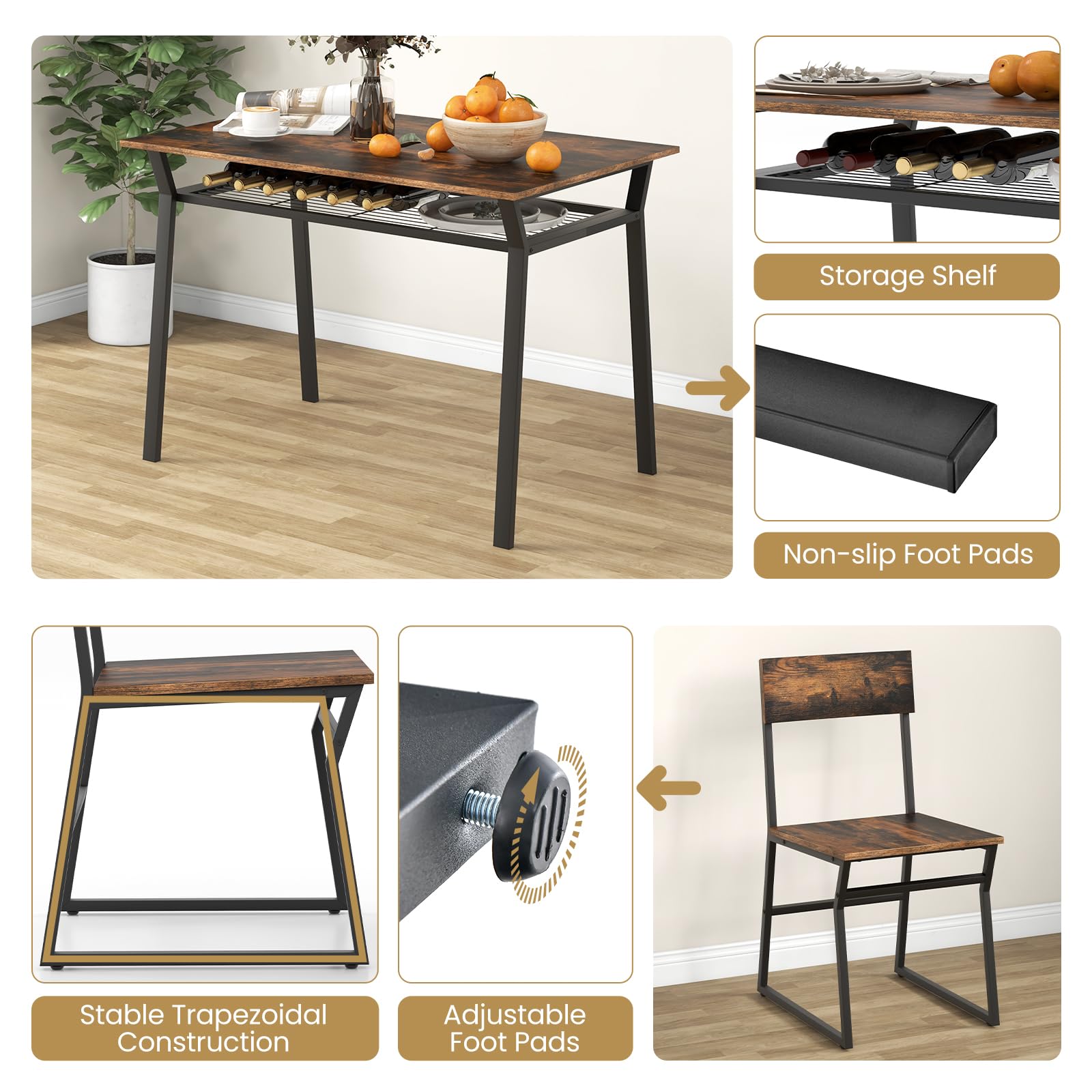 - 【Versatile 5-piece Set】The 5-Piece Dining Table Set is a versatile and stylish addition to any dining area. Crafted with a sturdy metal frame, this dining set is built to last. The set includes a rectangular kitchen table and four chairs, providing ample seating for family and friends.