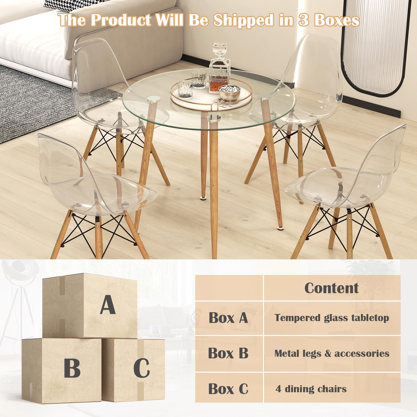 • Tempered Glass Tabletop: The dining table features a 0.3" thick tempered glass top that not only looks elegant but is also a breeze to clean. Besides, it presents higher strength & better durability, offering a longer lifespan.