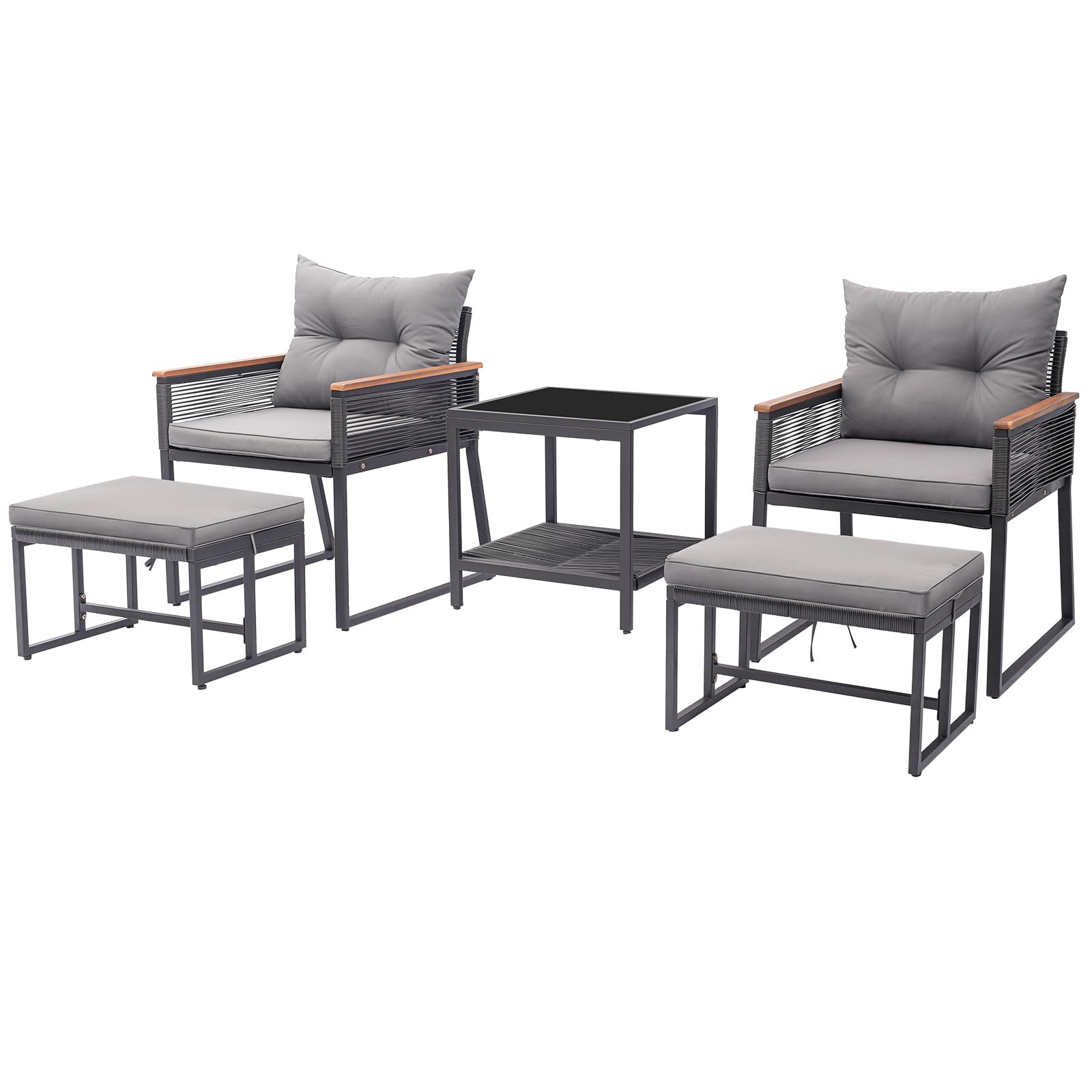 - Well-Woven Rattan: Crafted with precision, all the 5 pieces of this patio set feature tightly woven rattan. The built-to-last PE rattan material ensures durability and longevity, maintaining its stylish look through all seasons in various outdoor settings.