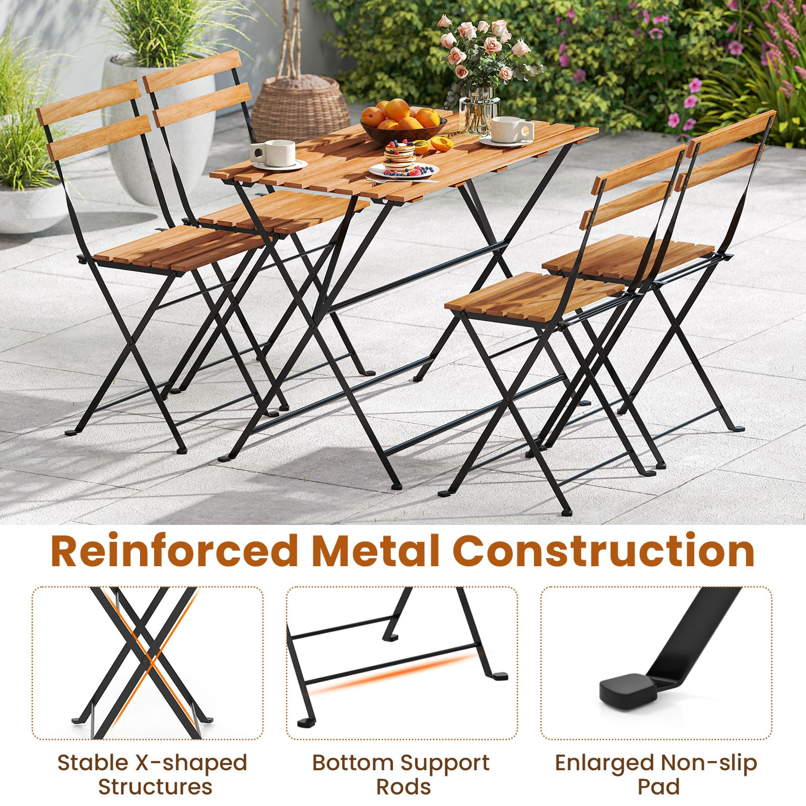 Whether you need a surface to chat with family, to sit and eat, or just a tabletop to store items, our 5-piece dining table set consisting of a rectangular dining table and 4 chairs can offer great convenience for you. Constructed of the metal frame and premium acacia wood, the modern dining room set is sturdy to ensure a long lifespan. Unique stylized design makes the table set suitable for most venues. An ideal way to enjoy delightful dining or drinking time with family or friends!