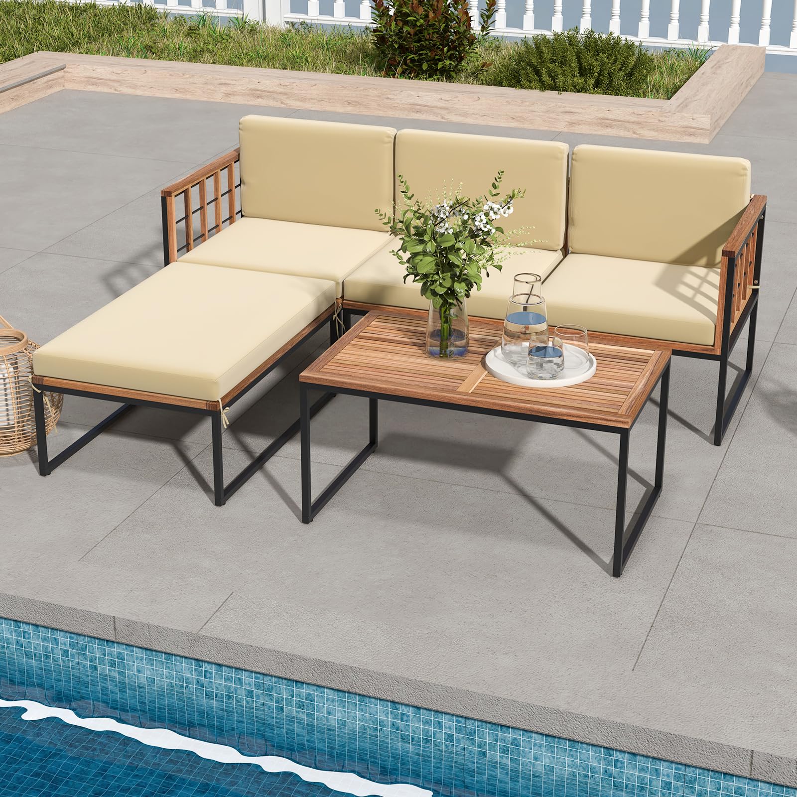 - Flexible Combination: Including 2 corner sofas, 1 armless sofa, 1 ottoman and 1 coffee table, this patio set can be freely arranged, which fits different occasions such as backyard, poolside, front porch and so on.