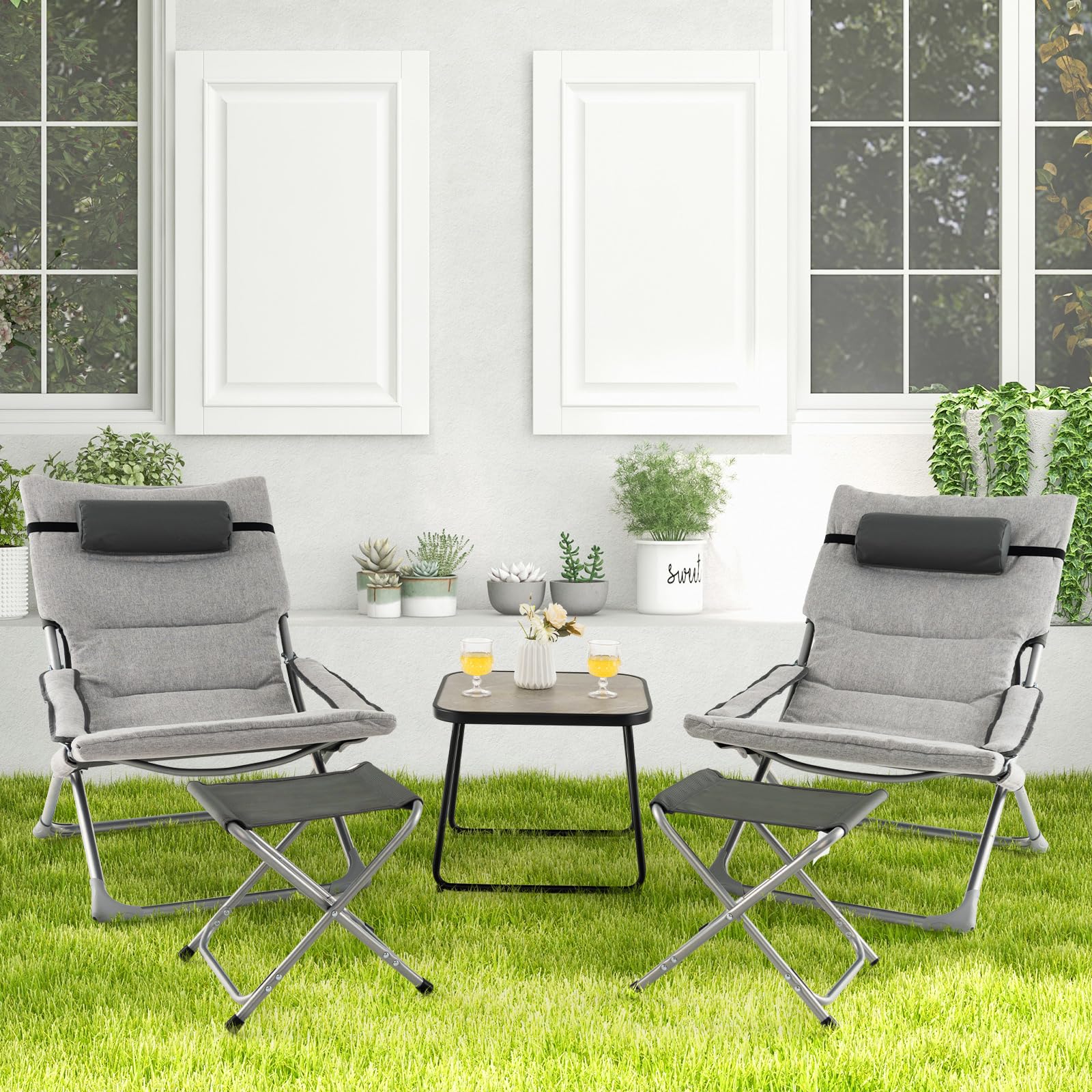- Versatile Usage: The combination of sling chair and ottoman will make your whole body fully relaxed. With high-level comfort and portable design, the whole 5 piece patio chair set will be a perfect addition to different occasions, such as backyard, poolside and deck.