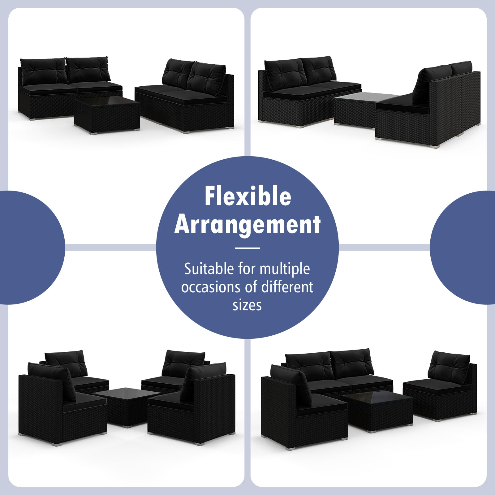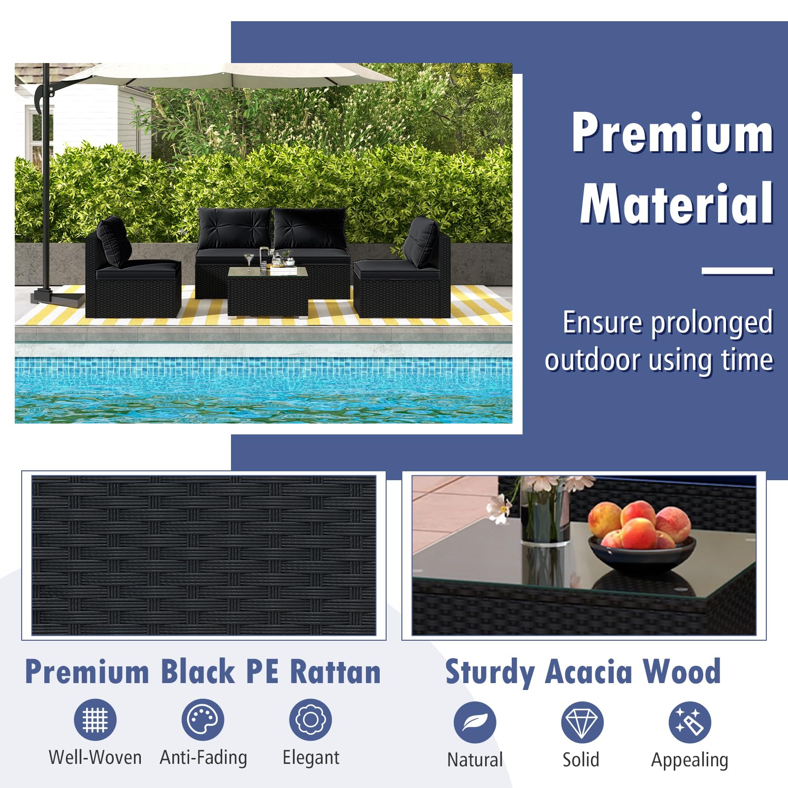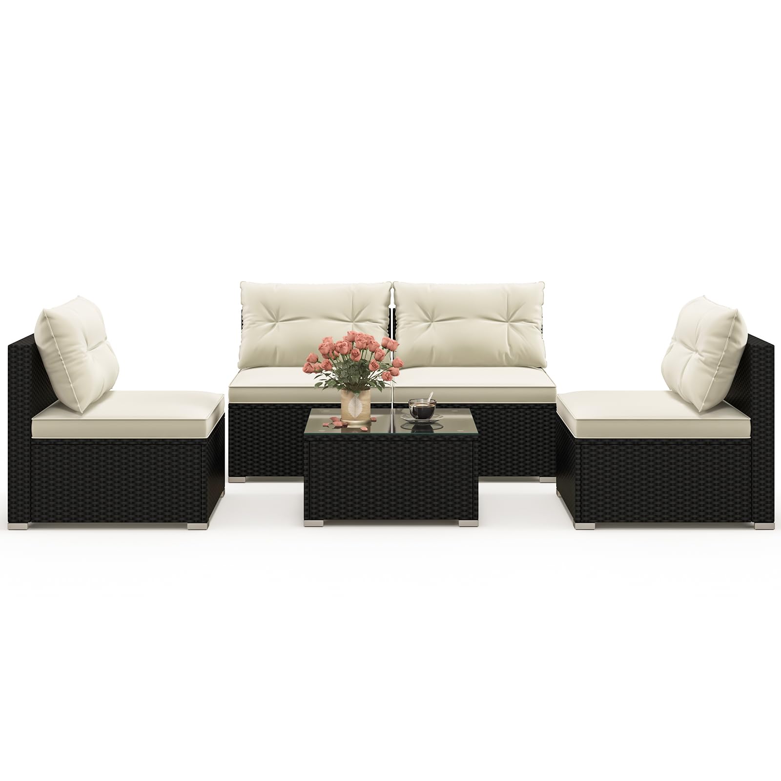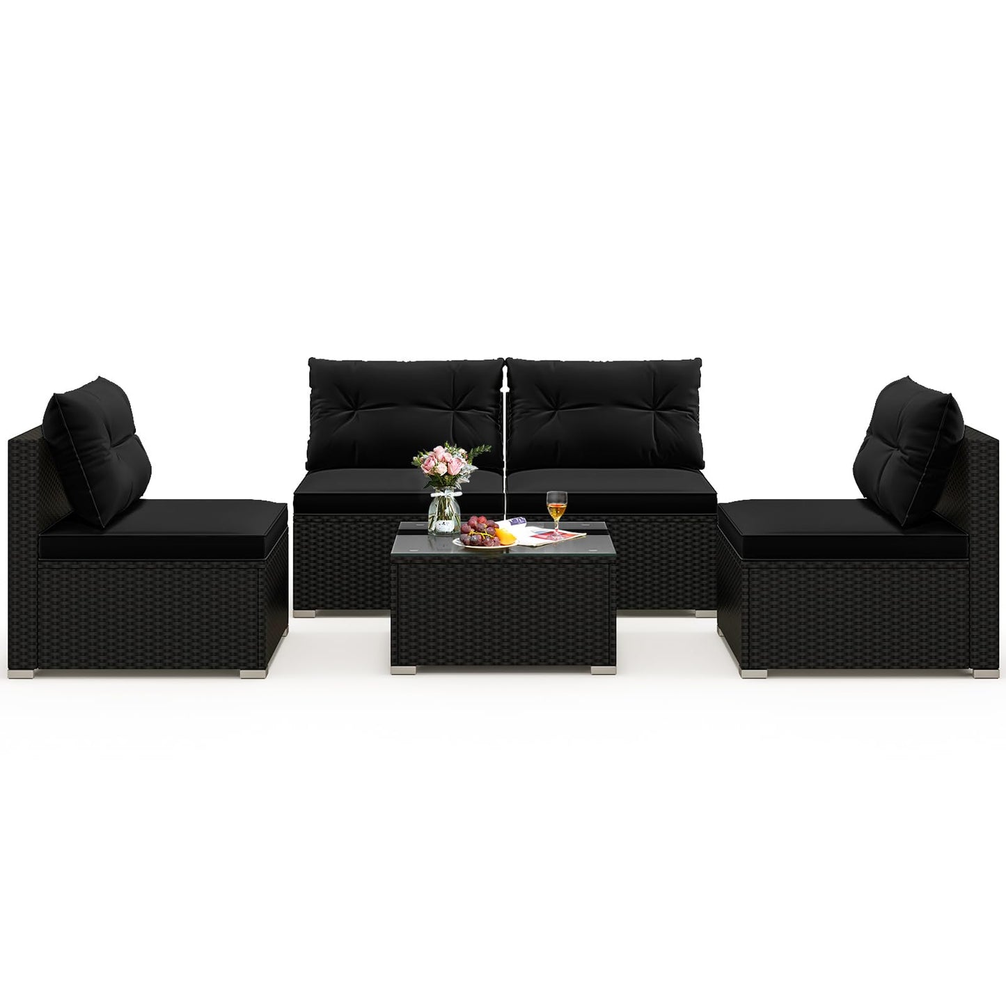- Elegant Rattan Set: All the 5 pieces of this patio rattan set are wrapped with premium black PE rattan which is well-woven and anti-fading, ensuring prolonged outdoor using time. And the rattan surface also makes the whole set more elegant