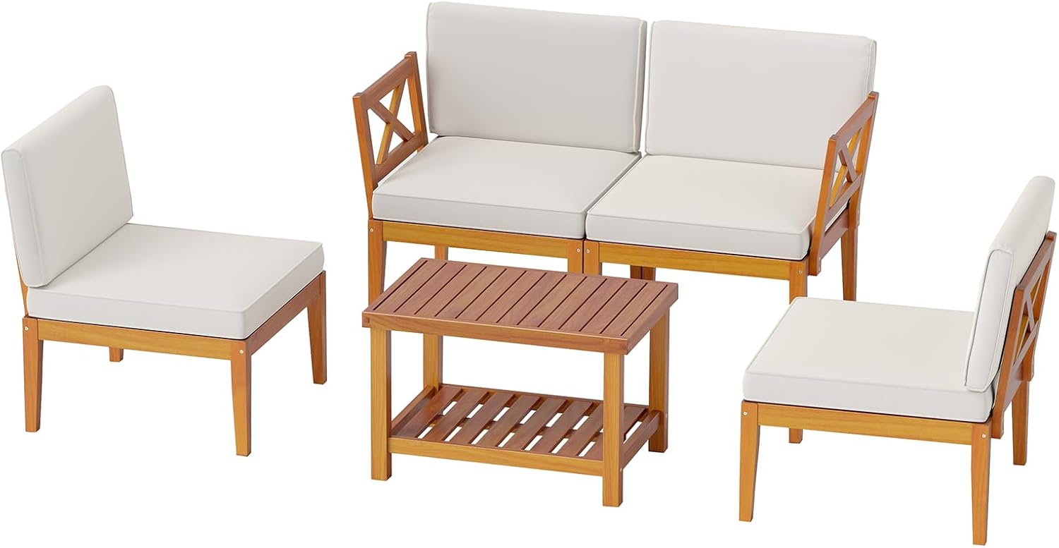 - Superior Stability: The solid acacia wood of this patio furniture set delivers unmatched stability and weight capacity (400 lbs for each sofa), ensuring sturdy and reliable support for your family and friends. Please regularly oil the wood surface for optimal maintenance.
