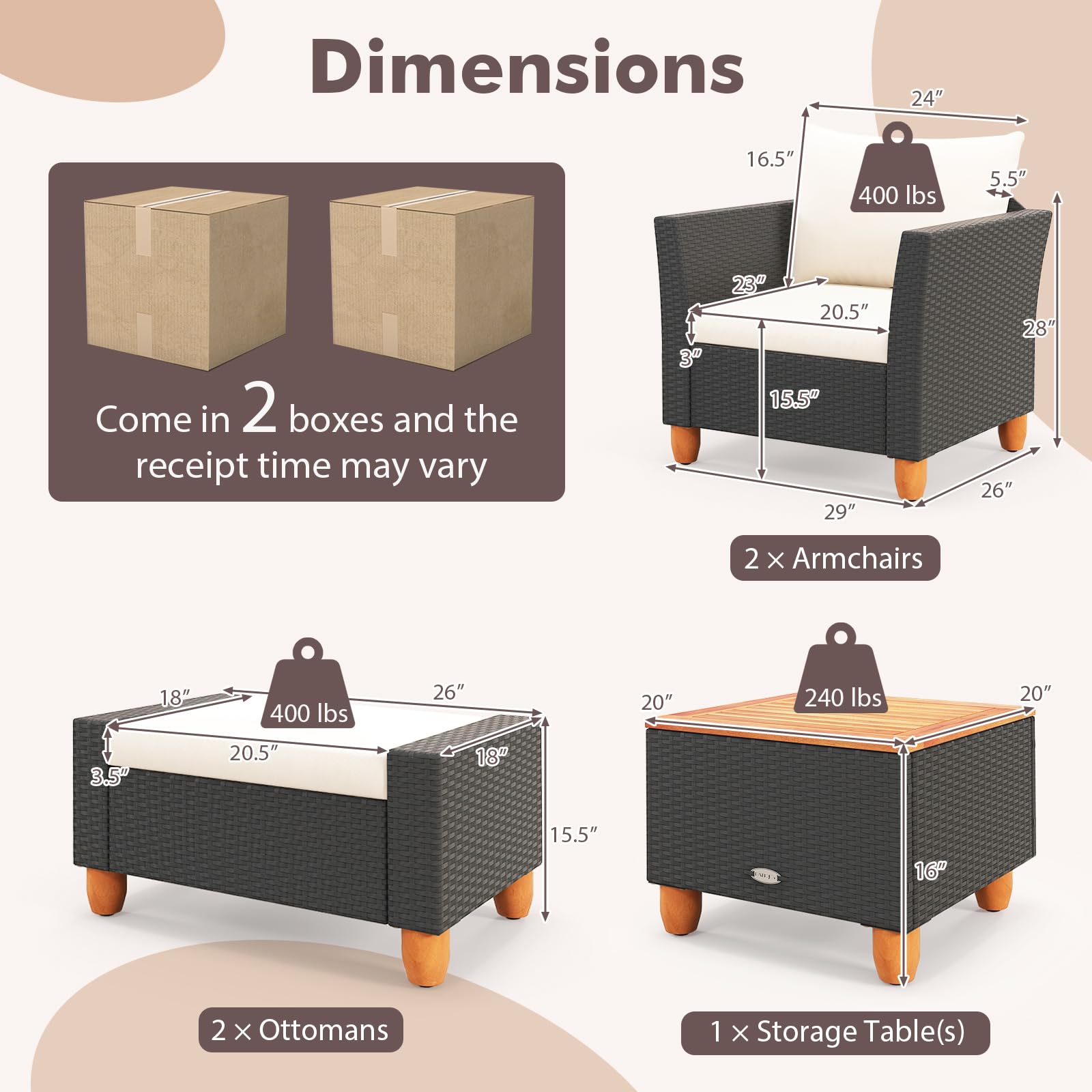 Tangkula 5 Pieces Patio Furniture Set, PE Rattan Chairs with Storage Table