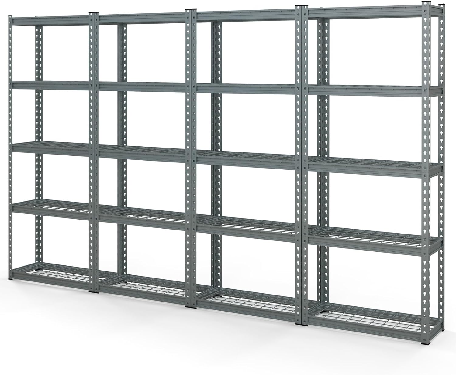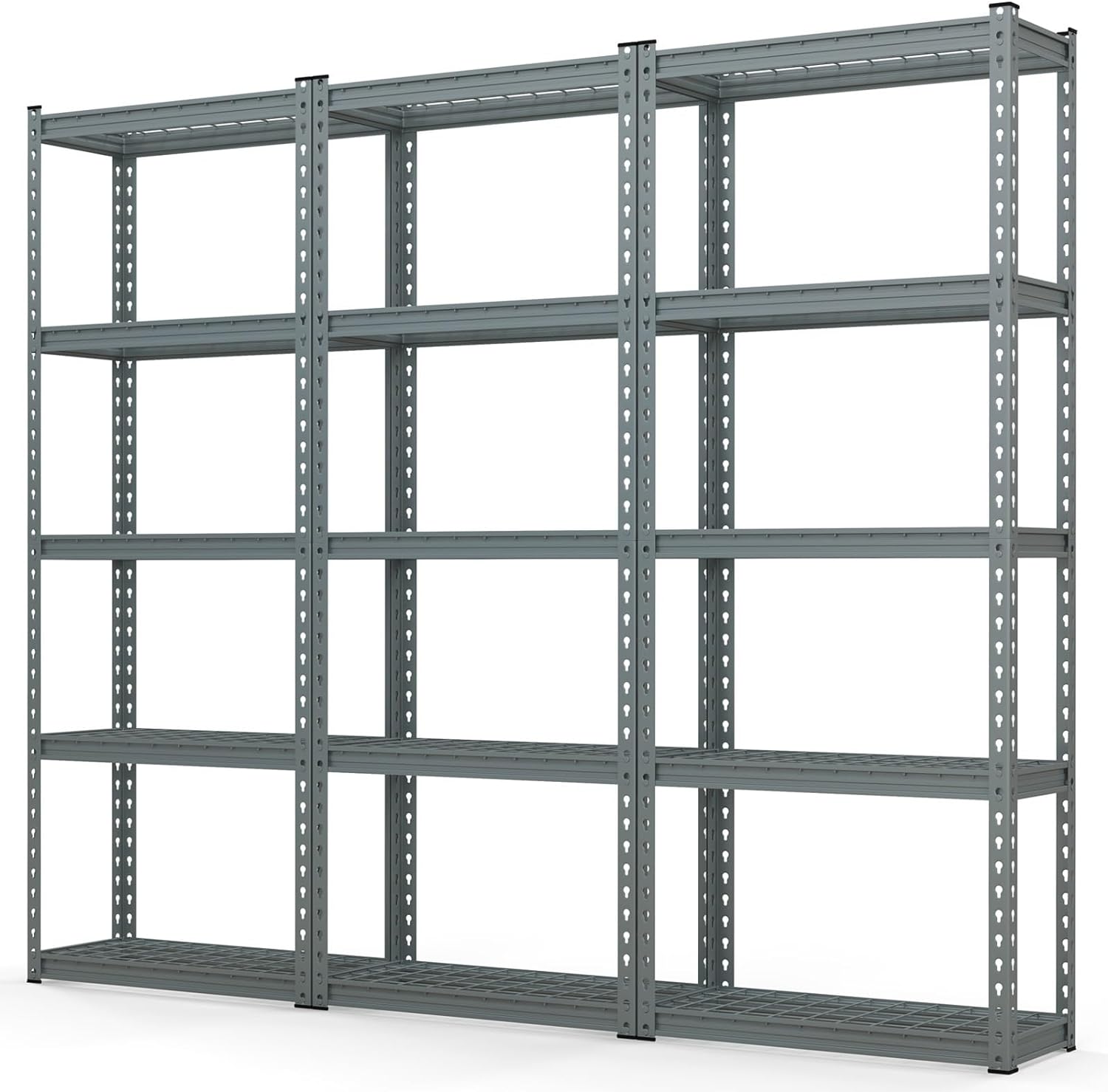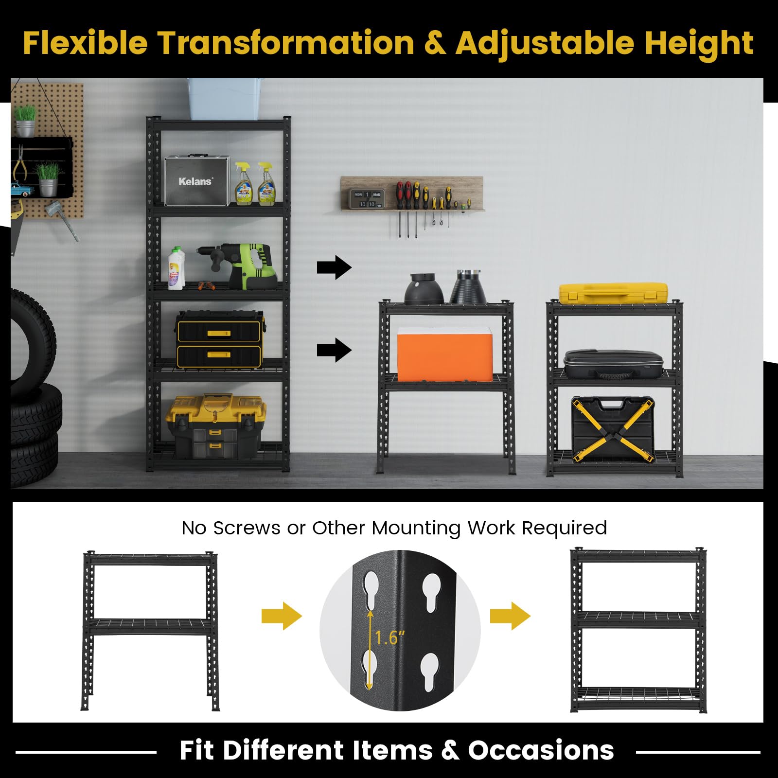 • Flexible Transformation & Adjustable Height: The 5-tier garage shelving can be divided into 2 small shelves for flexible use. Besides, you can adjust the height of the shelves to meet different storage needs of different sized items.