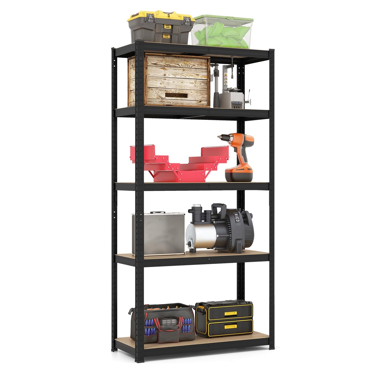 Transform your cluttered space into a well-organized area with our 5-tier metal shelving unit, designed to meet all your storage needs.