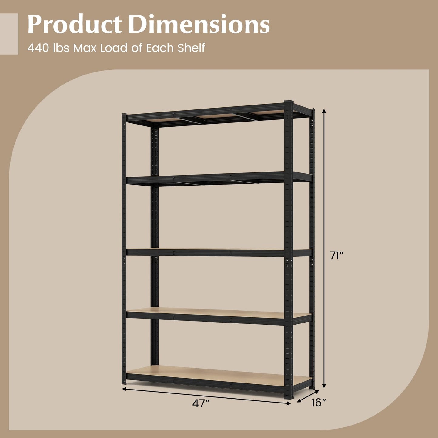 Weight Capacity of Each Shelf: 440 lbs