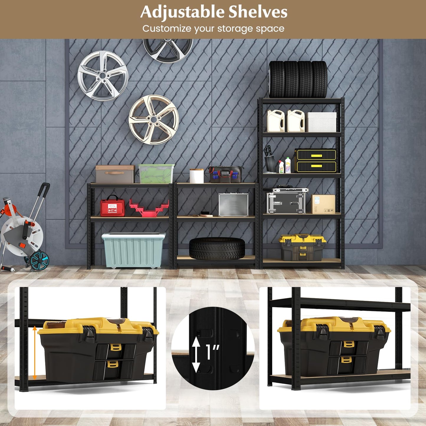 Suitable for garage, warehouse, pantry, shed, kitchen and more