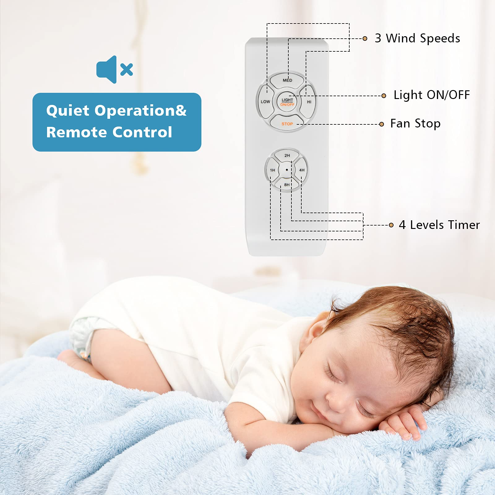 Add a sense of elegance and style to your living space with this 52' ceiling fan lamp, which is suitable for the farmhouse, bedroom, living room, kitchen and more. The powerful motor with reversible function allows the ceiling fan to rotate clockwise or counterclockwise according to the season. Besides, timer function with convenient remote control offers humanized using experience. Moreover, a short 5' down rod and longer 10' down rod are included for different installation options. And you can complete the assembly easily with clear instruction and necessary hardware.