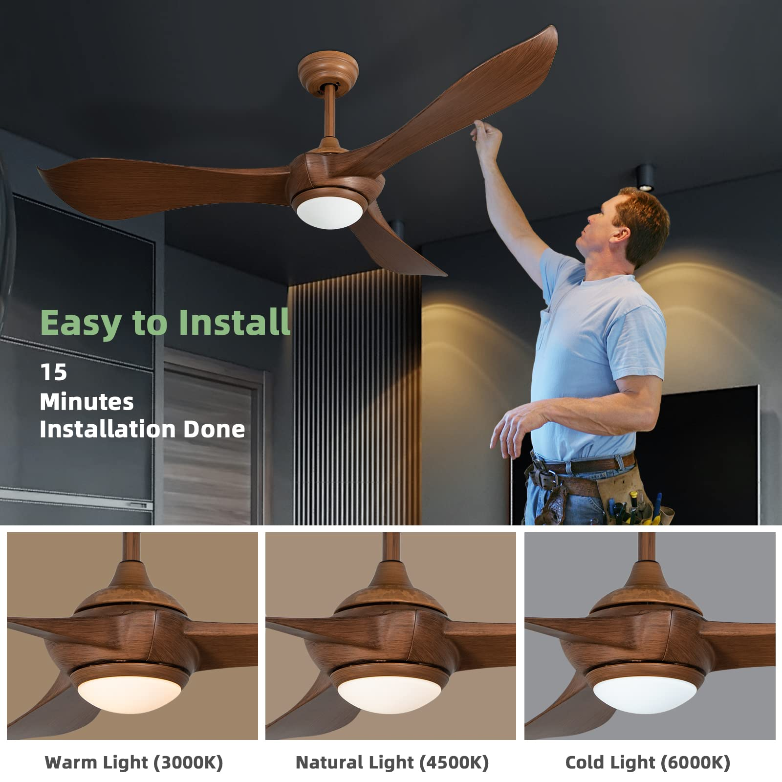Our ceiling fan is ready to bring your room to the next level. This 52 ceiling fan nicely fits small/medium/large rooms to blow evenly airflow and bring lightness. With multiple wind speeds and time settings available, you can freely adjust the fan based on your real needs. A handy remote control is included to make your control easier and more convenient. Thanks to its reversible DC motor, the fan will make your room cool in summer and warm in winter. As the blade is designed in a classic walnut way, it can also bring a touch of elegance to your room. The ceiling fan will surely be a perfect companion in all seasons with you.