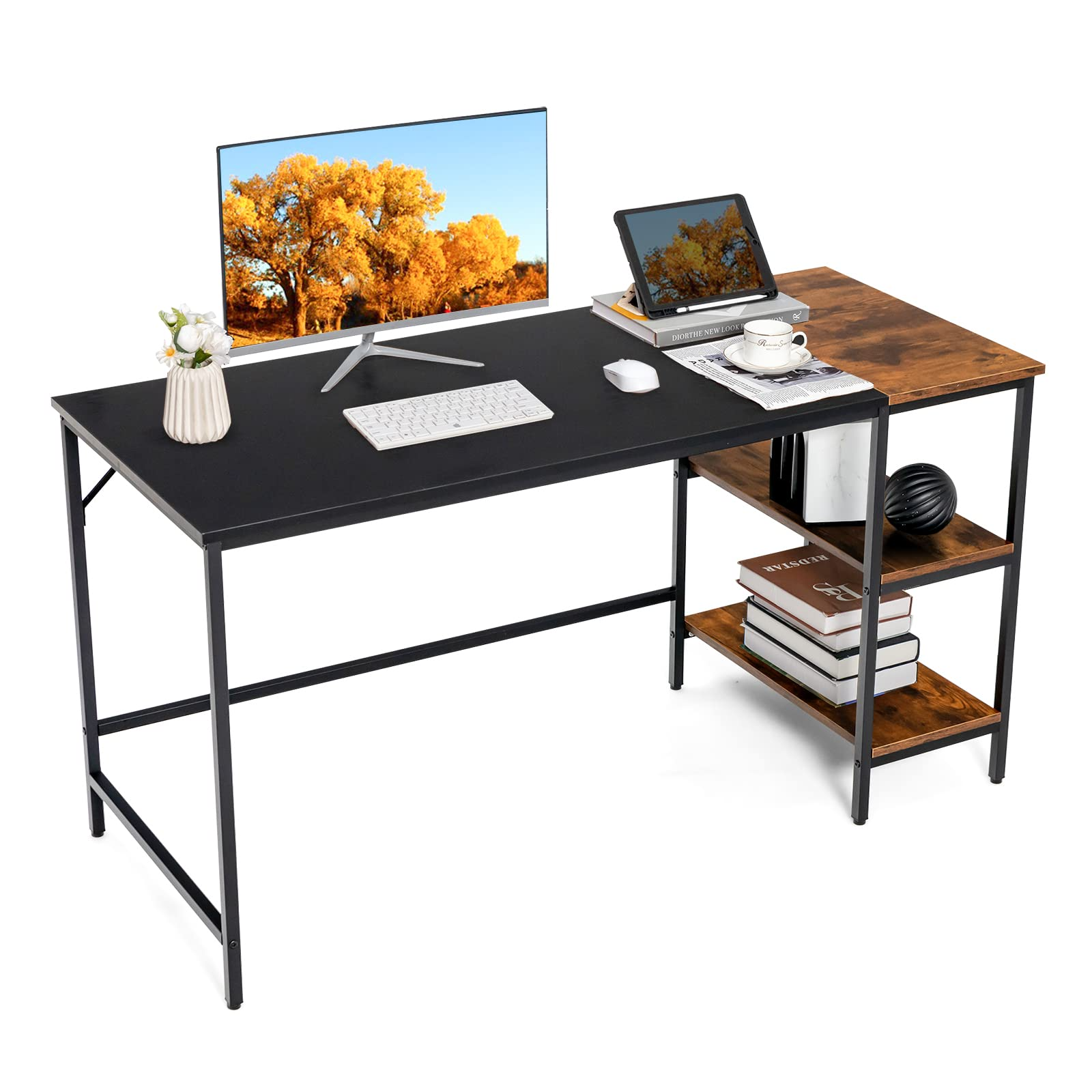 No matter what you want to do, either working or studying, either playing games or writing, this computer desk is a perfect choice for you. A spacious desktop offering optimal workspace can keep your daily items and office essentials well-organized. Moreover, a 2-tier open shelf greatly satisfies your storage needs. And you can remove the shelf to hold the CPU stand or larger items. Thicken-engineered wood, solid steel tubes, and a triangular frame account for a reliable structure for long-term use. Plus, reinforced crossbars and adjustable foot pads make the laptop desk more stable. With an industrial style, this study desk blends well with interior decoration and shows your unique taste. This practical desk is easy to fit snugly in a corner to maximize your limited space, whether used as a computer desk, writing desk, vanity table, or gaming table.