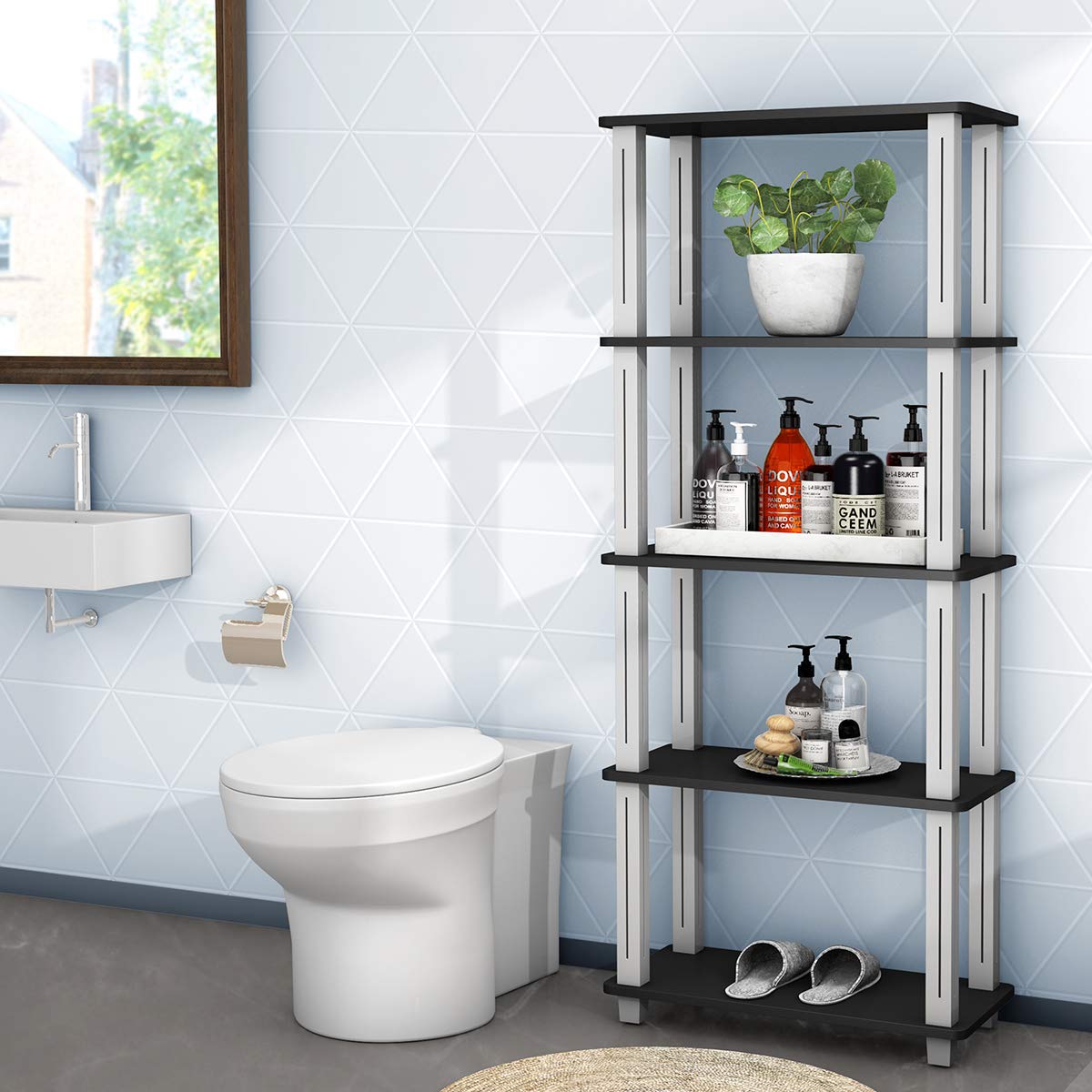 • Super Large Space with More Options Featuring 5 tiers, this shelf is with super large storage space that can well accommodate your daily necessities. You can choose your own way of placing items without worrying that the room is limited.