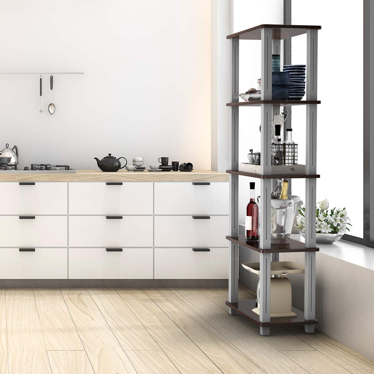 Tangkula 57" Storage Shelves, Space-Saving 5-Tier Storage Rack Organizer(Walnut & Black)