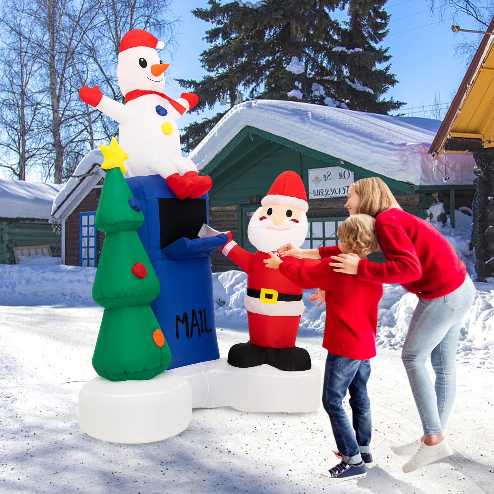 Tangkula 6 FT Lighted Christmas Inflatable Mailbox Santa Claus Snowman Christmas Tree Decoration with Built-in LED Lights