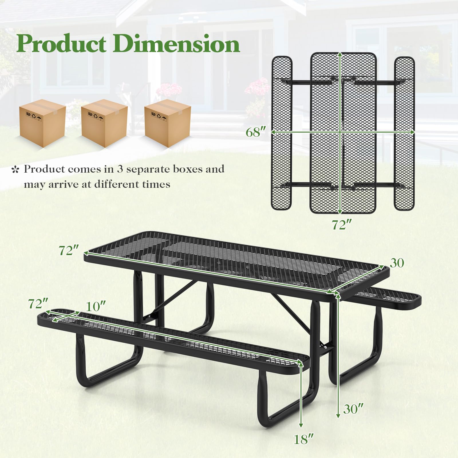 - Spacious Seating for 8: Accommodate your guests comfortably with this outdoor picnic table set, which is designed to seat up to 8 people. The 72-inch rectangular outdoor table provides ample space for beverages, food or decorative items.