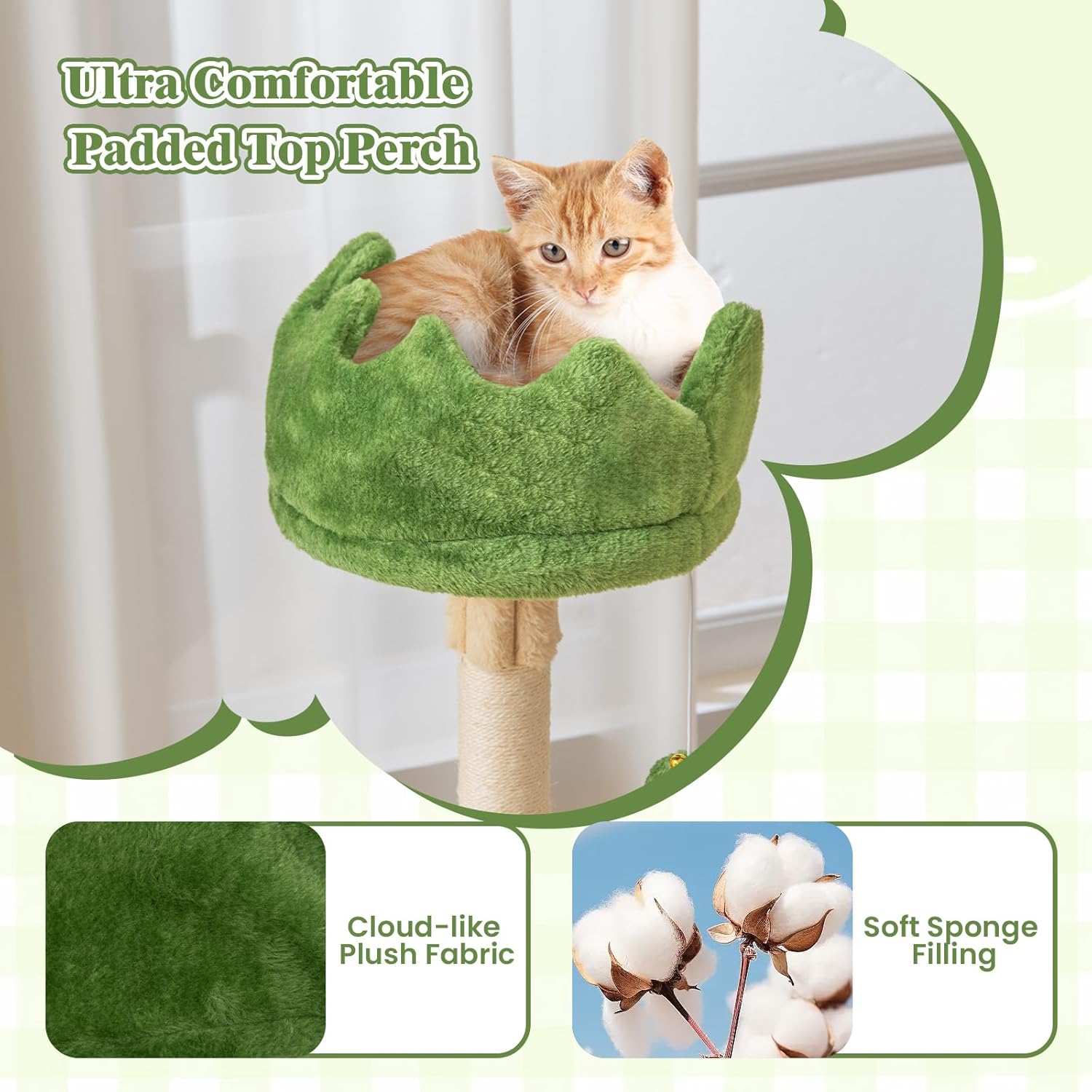 - Catering to Cats’ Coziness: Each level of the cat climbing stand is covered with the plush fabric, providing a soft and warm surface to offer a gentle hug for your cats. Moreover, the top perch is padded with thick sponge to elevated the comfort level.