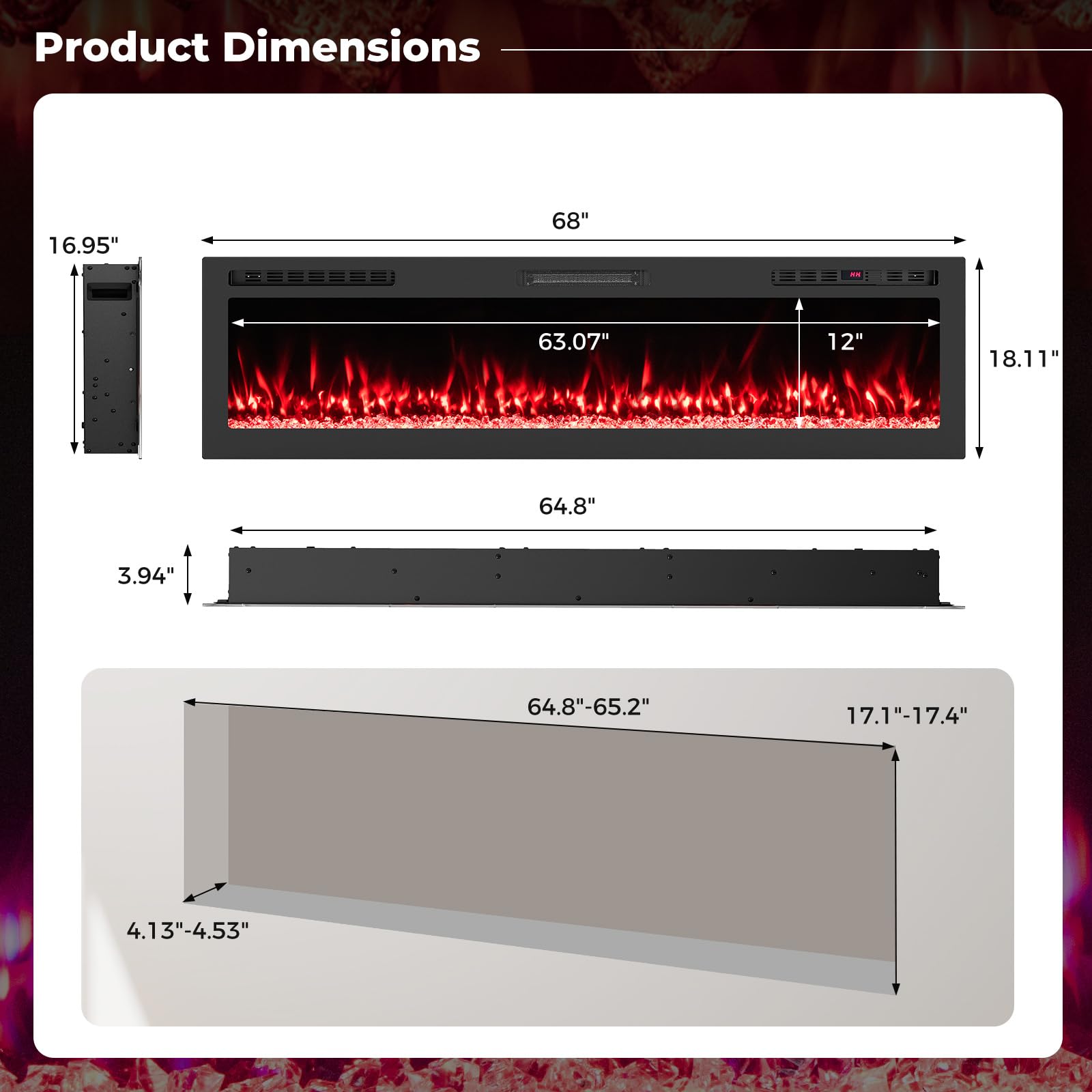 This versatile fireplace heater offers 2 installation options: sleek wall-mounted or seamlessly recessed to fit your decoration. Tailor your atmosphere with 12 flame and ember bed colors, adjustable across 5 brightness and speed settings. Additionally, you can enjoy these effects with or without heat all year round. This smart fireplace allows you to control all features effortlessly via remote, smartphone app or the built-in panel. Adjust the 750W/1500W heat settings, set 1H-12H timer and more from the comfort of your couch. Safety is paramount with ETL certification and built-in overheat protection, ensuring peace of mind as you bask in the cozy glow of your new fireplace heater.